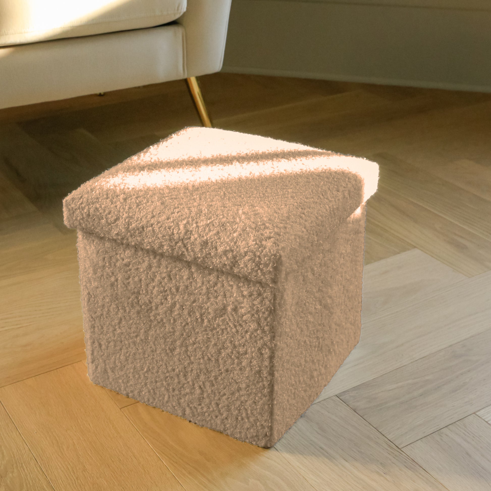 12" Taupe Boucle Cube Storage Ottoman
