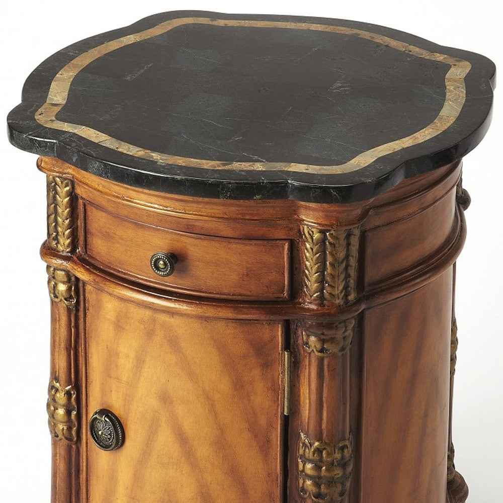 20" Black and Brown Stone and Wood Free Form Coffee Table With Drawer
