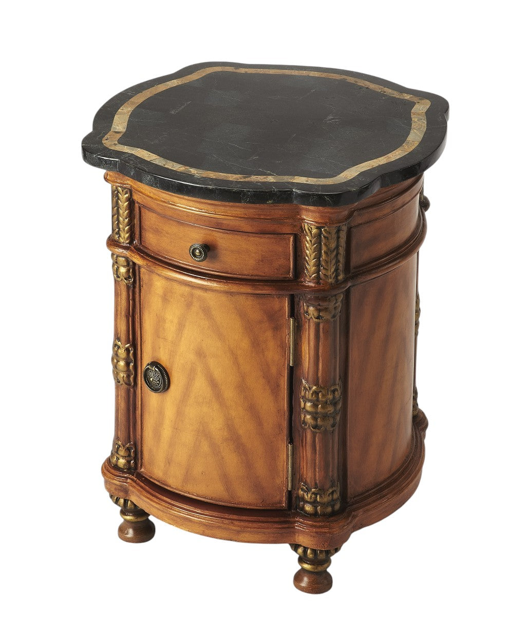 Make your living room or family room really stand out with this 20" brown and black stone free form coffee table with drawer. Quality construction from the brown solid manufactured wood base combines with black stone of the top to give this table a fresh and updated look. This free form table utilizes its unique shape to give your room a modern geometric accent. It has a fresh design that will definitely breathe some fresh air into your interior. This coffee table is the sturdy, reliable and stylish answer to your living room needs. 28" H x 20" W x 20" D