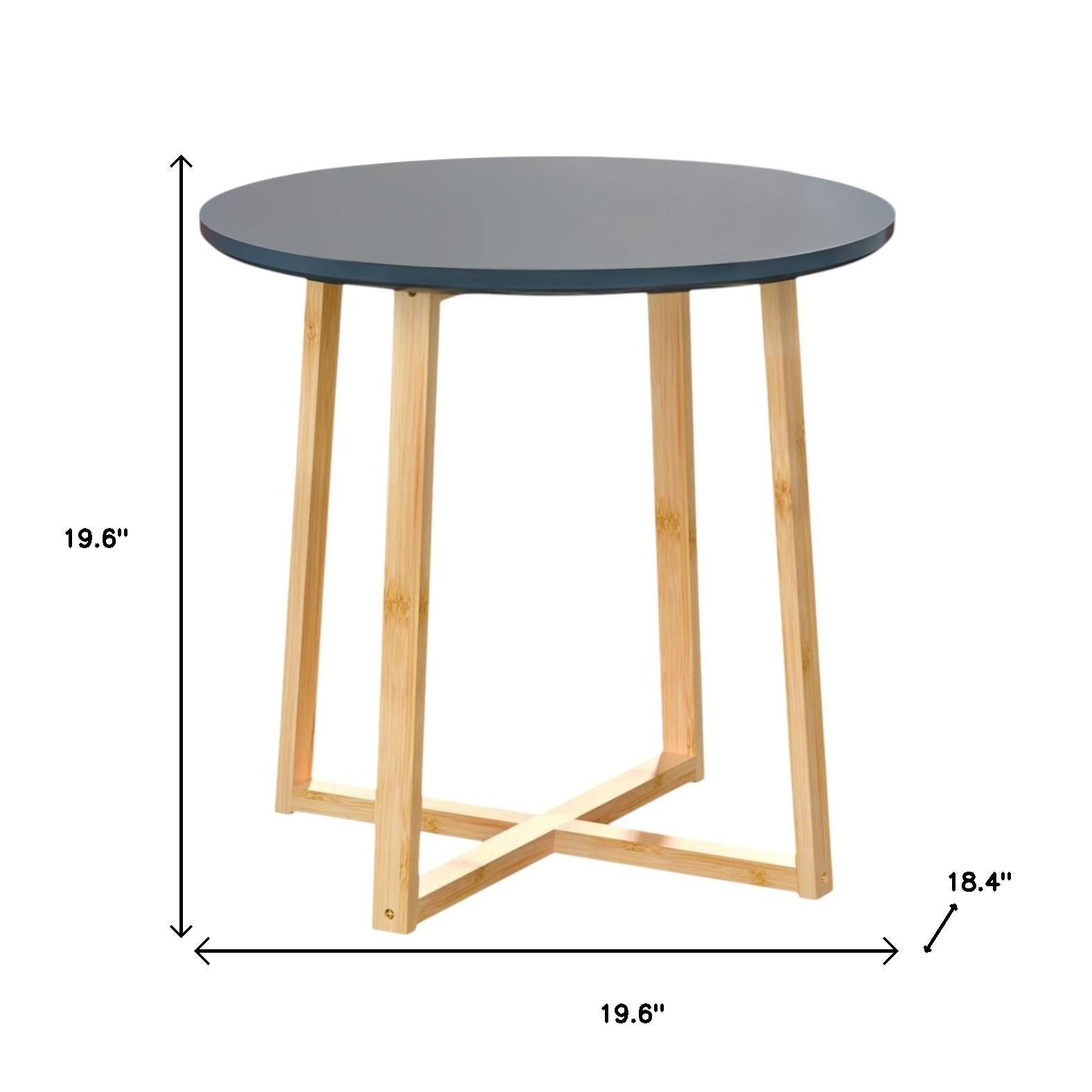 Optimize your space and add some charm to your room with the 20-inch gray and natural solid wood round cross legs end table. The top of this solid wood table is gray, while the open geometric base is a nice compliment in natural. Side tables are a great way to flank your sofa, use as an accent next to your favorite chair, or can even be used bedside. This versatile table is a great accent for most any room. 19.6-inch h x 19.6-inch w x 18.4-inch d.