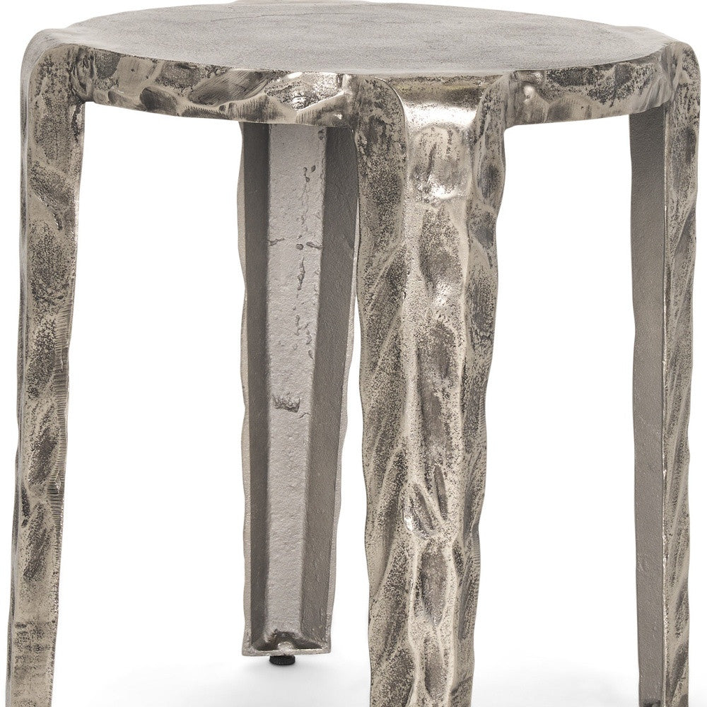 The 20-inch silver iron and metal is a stylish tray table that effortlessly enhances your living space. Its sleek modern design complements a variety of interior aesthetics, making it a versatile addition to any room. Crafted from durable iron and metal, this table ensures lasting beauty and functionality. The elegant silver color throughout the table radiates a sophisticated charm, adding a touch of luxury to your home decor. Perfect for serving snacks or as a decorative display, this tray table combines practicality with a chic appeal. Its compact size allows for easy mobility, making it an ideal choice for both entertaining guests and everyday use. 21-inch h x 20-inch w x 20-inch d.