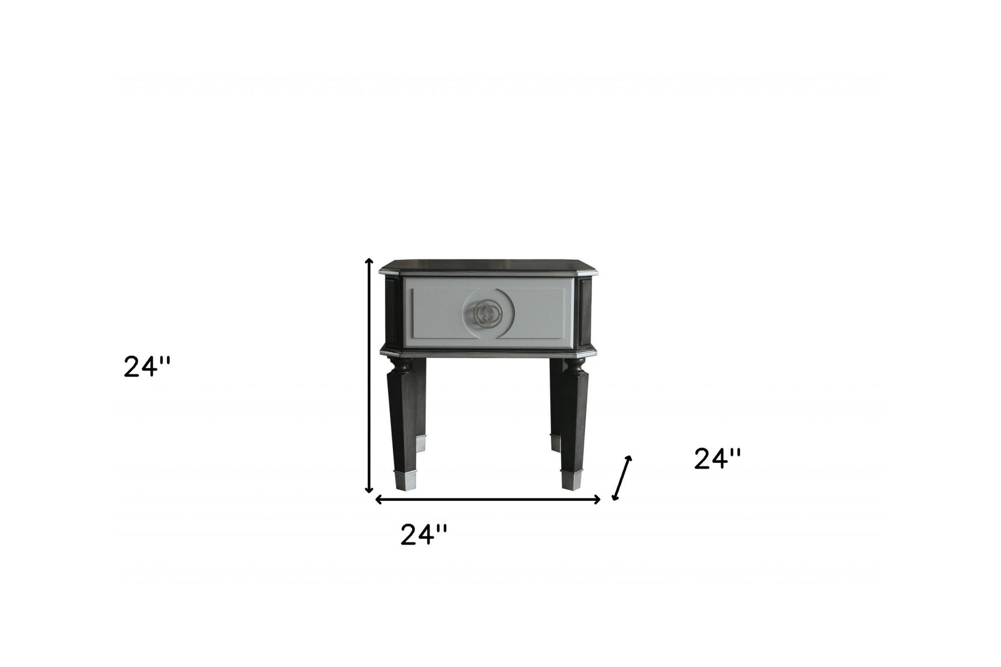 Optimize your space and add some charm to your room with the 24" charcoal & light gray manufactured wood square end table with drawer. This multi-functional end or side table is built to last from high quality manufactured wood. Includes a single easy pull out drawer for handy storage of life's little essentials. Side tables are a great way to flank your sofa, use as an accent next to your favorite chair, or can even be used bedside. This versatile table is a great accent for almost any room. 24" H x 24" W x 24" D