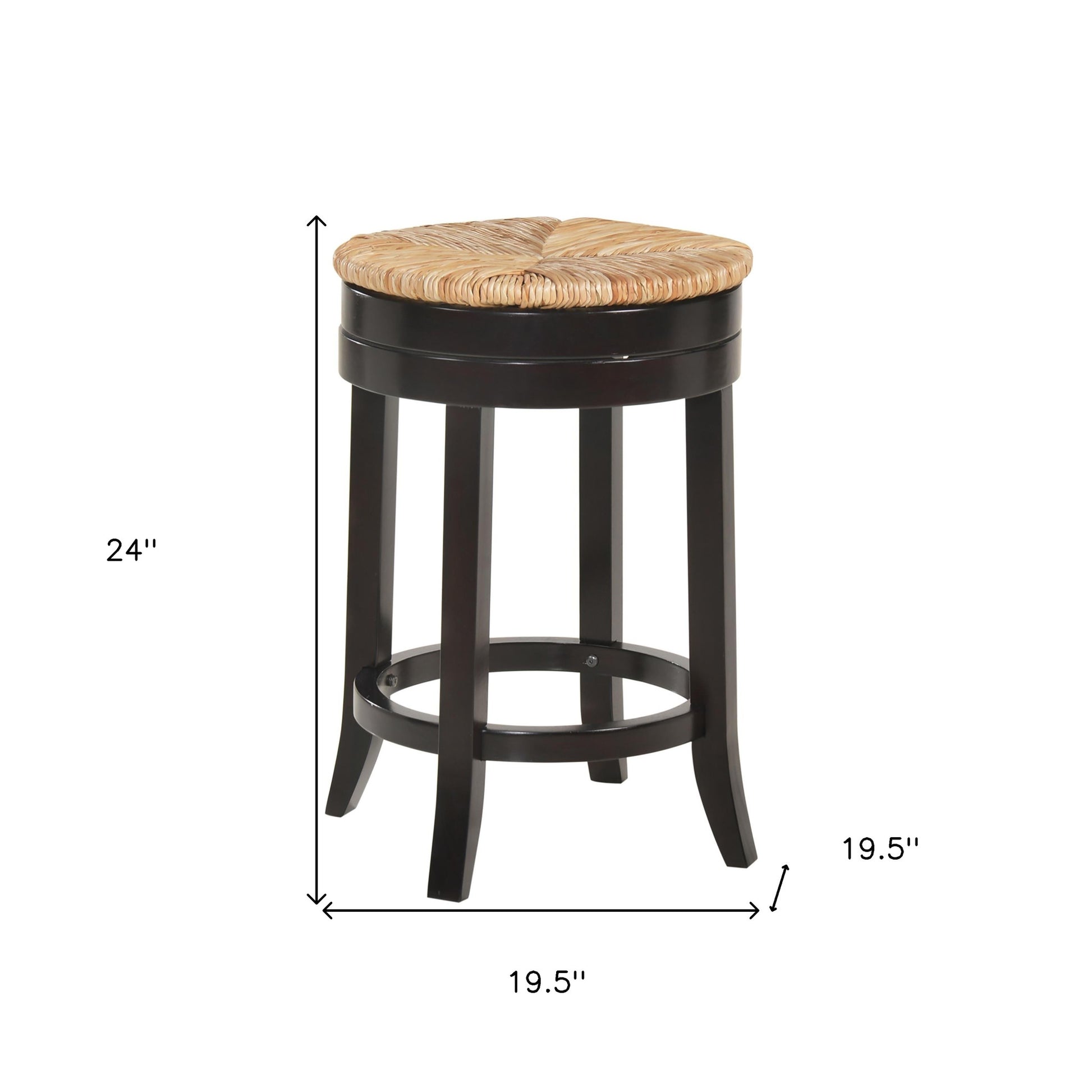 Comfortable enough to sit in for awhile, this 24-inch natural and espresso solid wood swivel backless counter height bar chair will transcend the look of your room. The espresso coloration of the high quality solid wood base marries nicely with the natural rush seat. The round shape of the seat give this backless chair a fresh and fashionable look. Designed with a footrest for comfort and convenience. 24-inch H x 19.5-inch W x 19.5-inch D