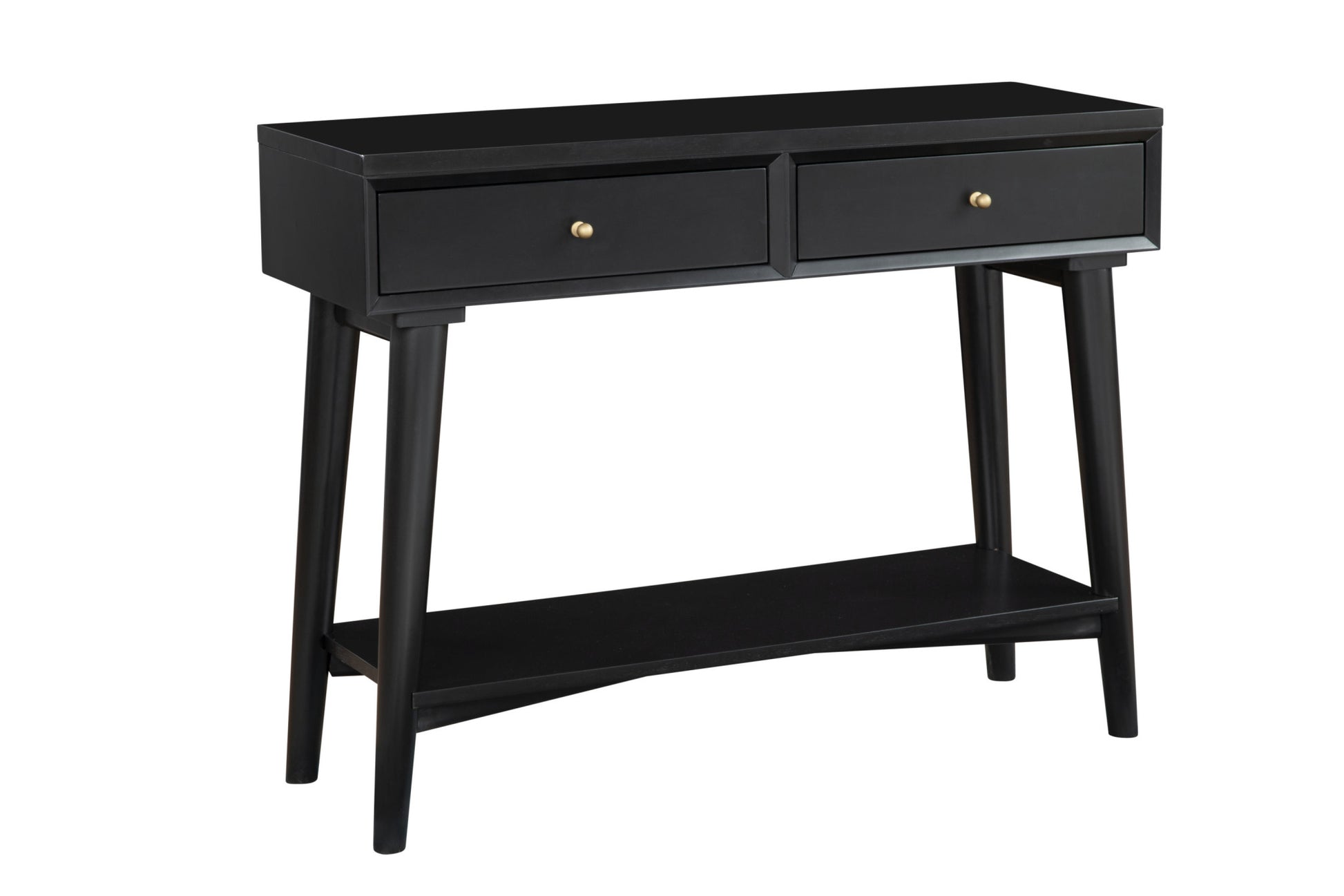 This 42-inch black floor shelf console table with shelves and drawers can provide a variety of practical functions such as providing extra storage space, serving as a display area for decorative items or acting as a catch-all for keys, mail, and other small items. This versatile table is a classic rectangular shape, which will easily fit into most any space in your home. This table has a top made with black manufactured wood that is known for durability and easy maintenance. In addition to a great top, our console table has a high quality manufactured wood floor shelf base that is durable and easy to clean and maintain. Versatile in use, console tables can be used for a variety of purposes in a variety of rooms and settings. 33-inch H x 42-inch W x 14-inch D