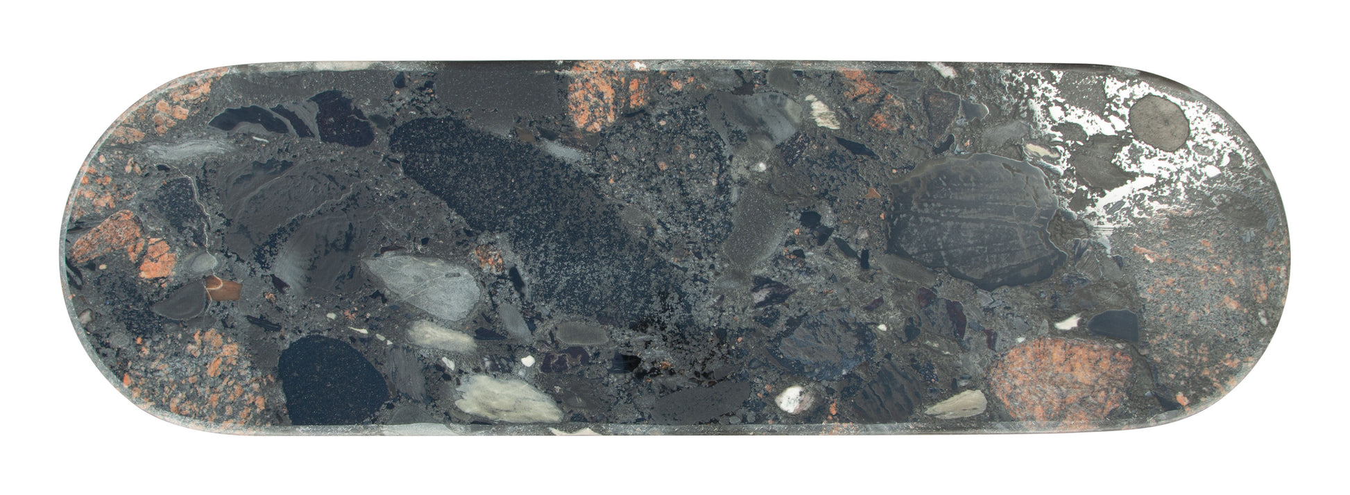 Transform your home with our elegant and versatile 43-inch black and gold genuine marble and steel double pedestal console table. This oval top console table is ideal for up against the wall, can free stand in a room, or sit behind the sofa perfectly. The genuine marble table will add beauty to any room with its alluring and distinctive veining of the stone and golden trimmed edges. In addition to a great top, our console table has a uniquely shaped steel double pedestal base. Ideal for living rooms, bedrooms, lobbies, home offices, and lounge areas, this console table is a unique and modern chic way to accent your space. 30.30-inch h x 43.00-inch w x 13.00-inch d.