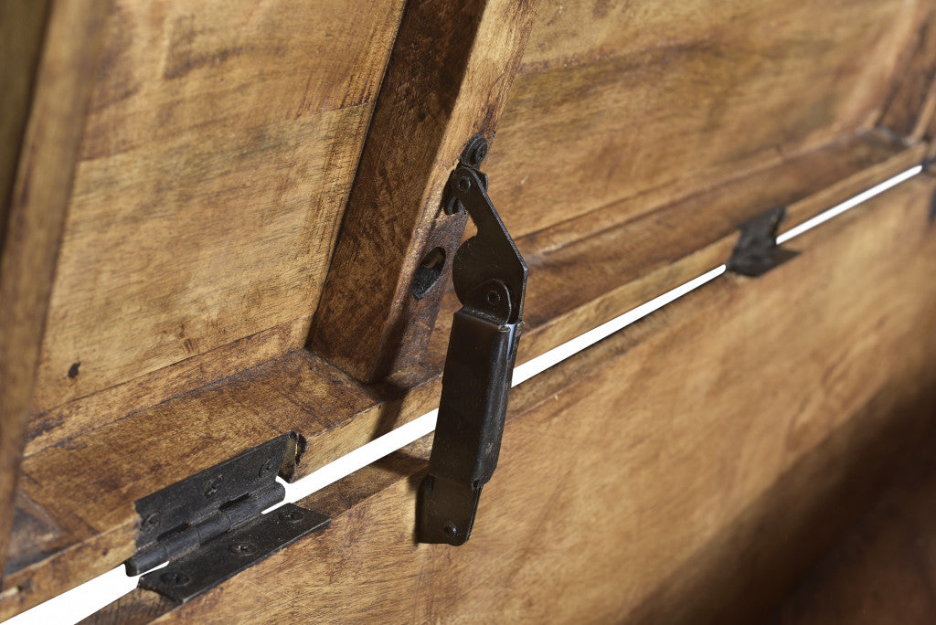 Add a good looking decorative accent to your space that is also practical for seating. The brown solid wood top of this bench is a nice contrast to the high quality, black metal of the base. Complete with a purposefully distressed finish, this bench has an aged, vintage, and rustic feel. A convenient flip top gives this bench multi-functionality to house hidden storage to help keep your space neat and tidy. Ideal for entrance foyer, hallway, or laundry room. This bench is a great place store your keys, put on your shoes, or be a catchall on your way in or out. Benches don't have to be unsightly. Increase your seating and the fashion quotient of your room all at the same time with this hard wearing, versatile, and good looking bench. 17-inch h x 46-inch w x 15-inch d