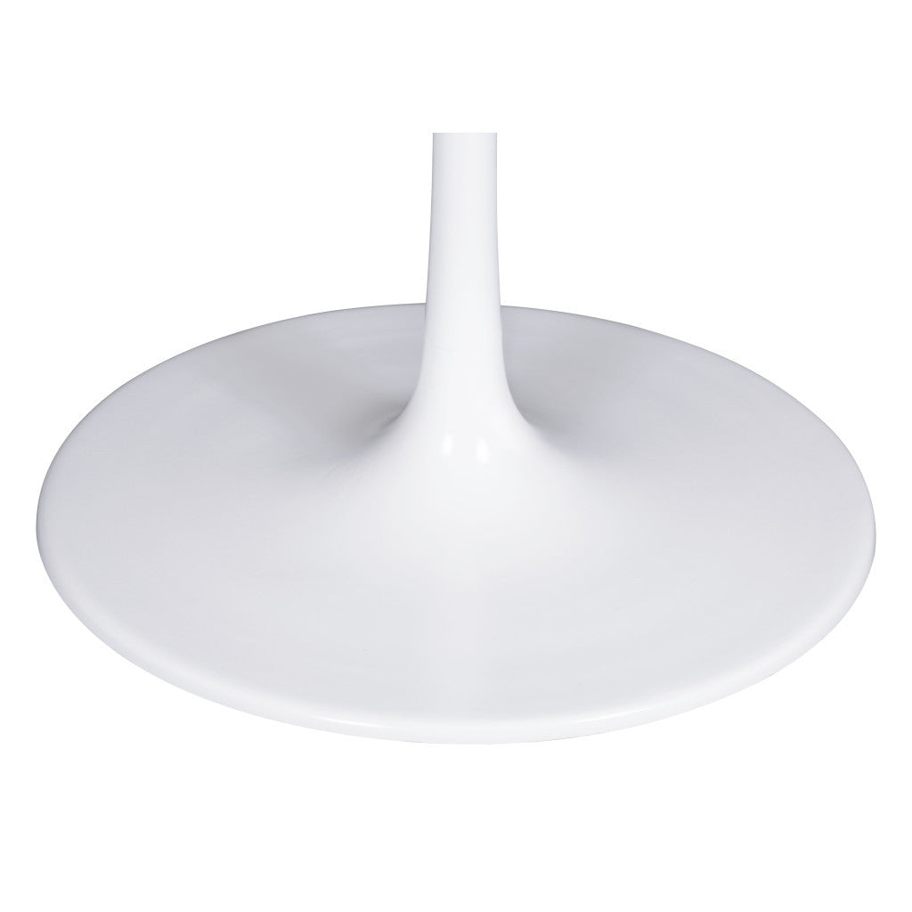 This good looking 47" white rounded marble and steel dining table is sure to inspire compliments. Solid white steel base is finished off with a coordinating white marble top, giving this table a chic monotone look. This table features a pedestal base that adds some depth and interest to your space. Seat up to 4 family and friends around your new dining table. Complete your kitchen or dining room with this well made and stylish table. The dining table is a symbol for togetherness, special meals, and conversation. This 47" white rounded marble and steel dining table is a must-have for your home. 30" H x 47" W x 47" D