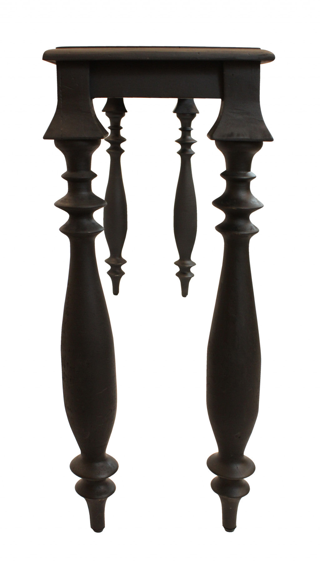 This 54-inch black solid wood distressed console table is a high-quality, long-lasting piece of furniture that you can enjoy for years to come. This rectangular table has clean lines and plenty of surface area. The black hardwood table surface makes this unit stand out with its high quality material and construction. The four leg base is made of solid wood, the most strong and durable option available. Ideal for living rooms, bedrooms, home offices, and lounge areas, this console table is not only good looking but multi-functional and practical addition to your space. 30-inch H x 54-inch W x 12-inch D