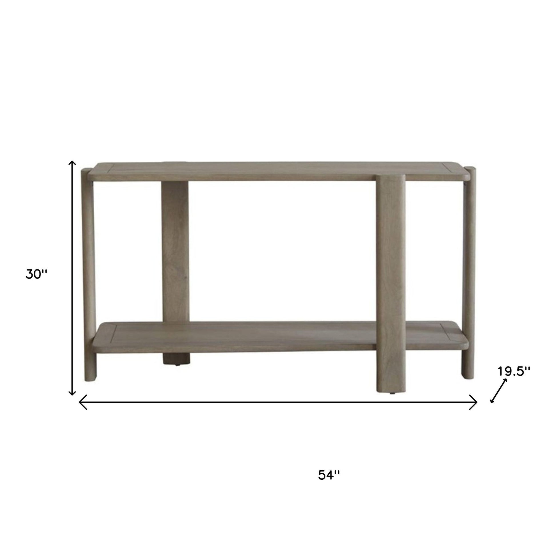 54" Natural Solid Wood Distressed Console Table With Shelf