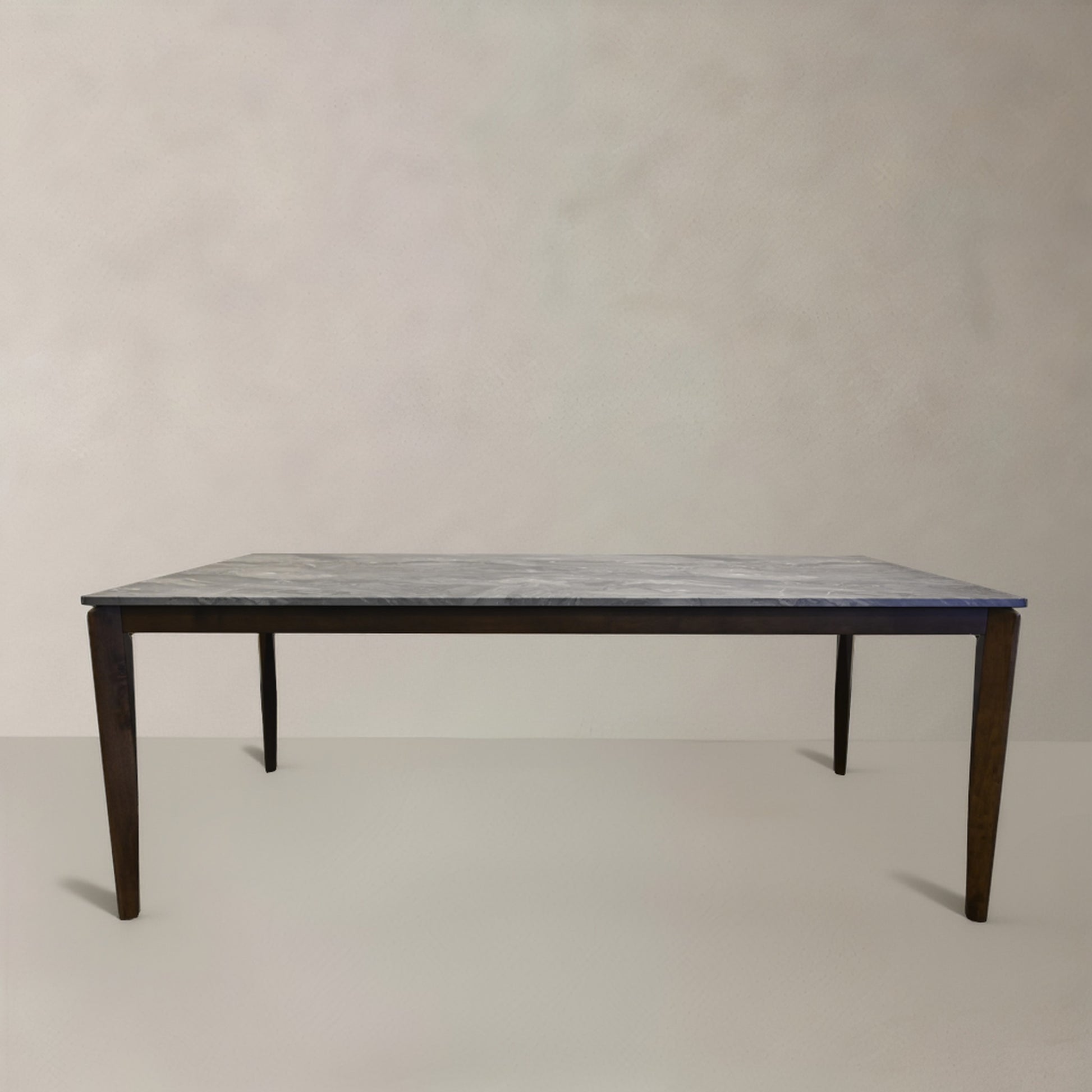 This good looking 63-inch gray and walnut faux marble and wood dining table is sure to inspire compliments. The gray faux marble top of this table is a nice visual contrast to the high quality, walnut brown manufactured wood of the base. The two-tone finish makes it even more attractive and fashionable. Seat up to 6 family and friends around your new dining table. Complete your kitchen, dining room, or office with this well made and stylish table. 29.50-inch h x 62.90-inch w x 35.40-inch d.