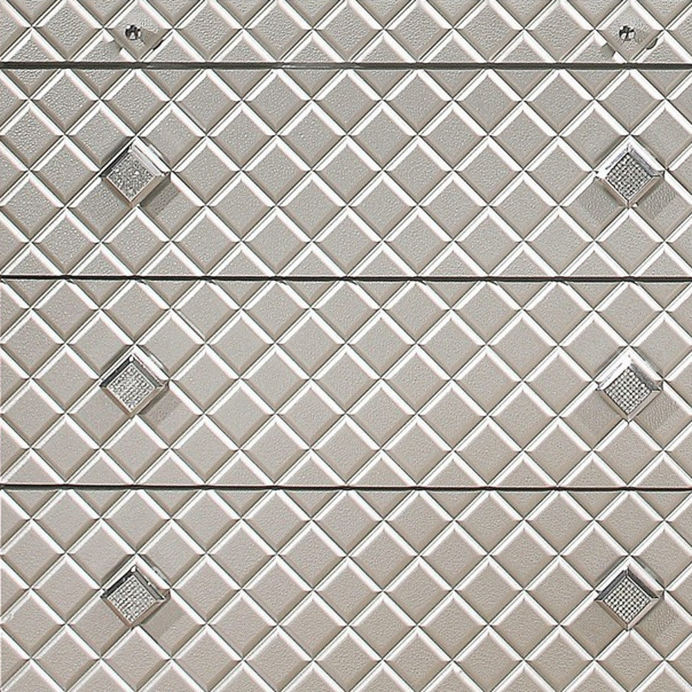 Enhance your room into a visually delightful and highly functional space with this 65-inch champagne solid wood with bling six drawer double dresser. Designed for you to stand in front of and get ready, this glitzy horizontal double dresser has a convenient and wide top area for your getting ready needs and supplies. Loaded with capacity, this piece is equipped with six easy open drawers for practical and good looking clothing storage. This dresser is built to last from high quality solid wood,. 40.83-inch h x 64.92-inch w x 17.76-inch d.