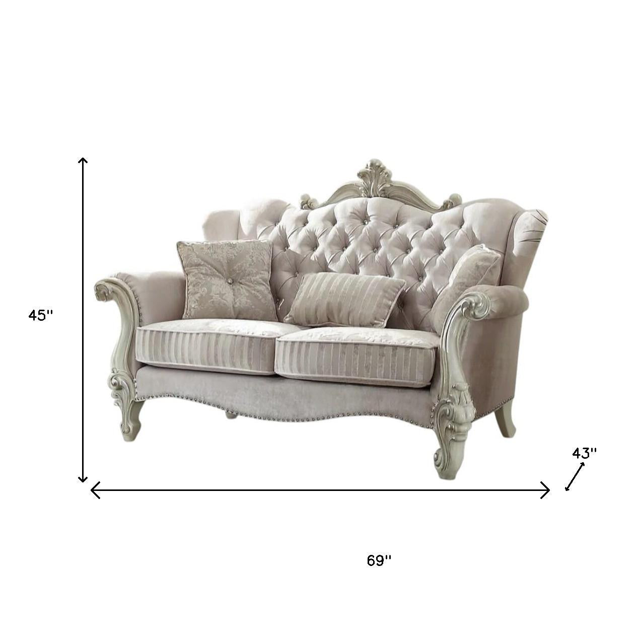 69" Ivory Chesterfield Loveseat and Toss Pillows