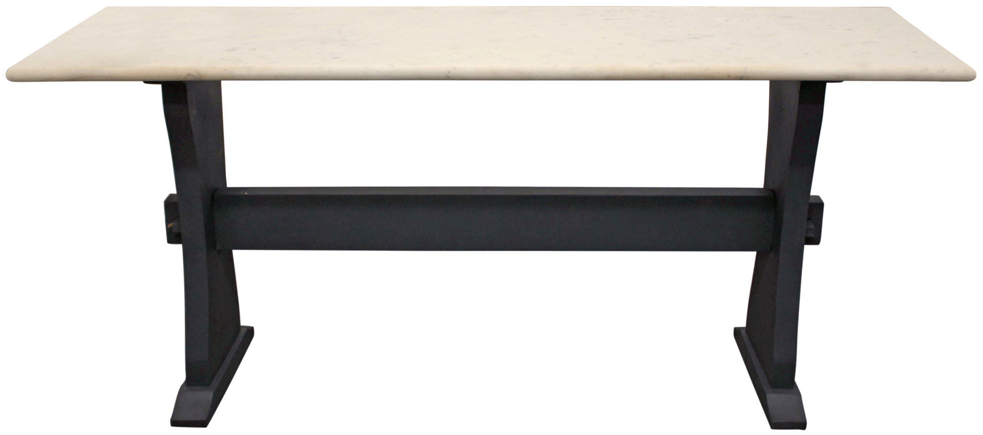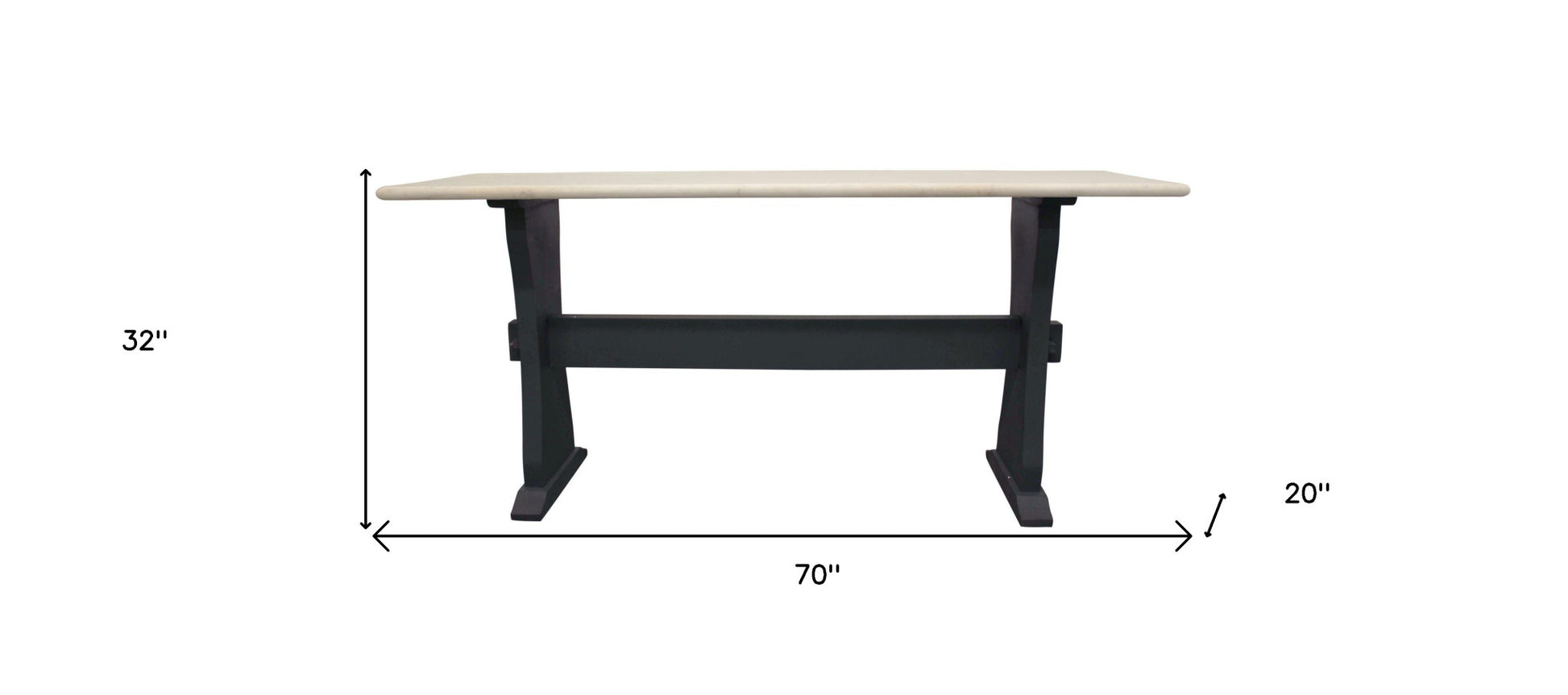 70" Ivory and Black Genuine Marble Trestle Console Table