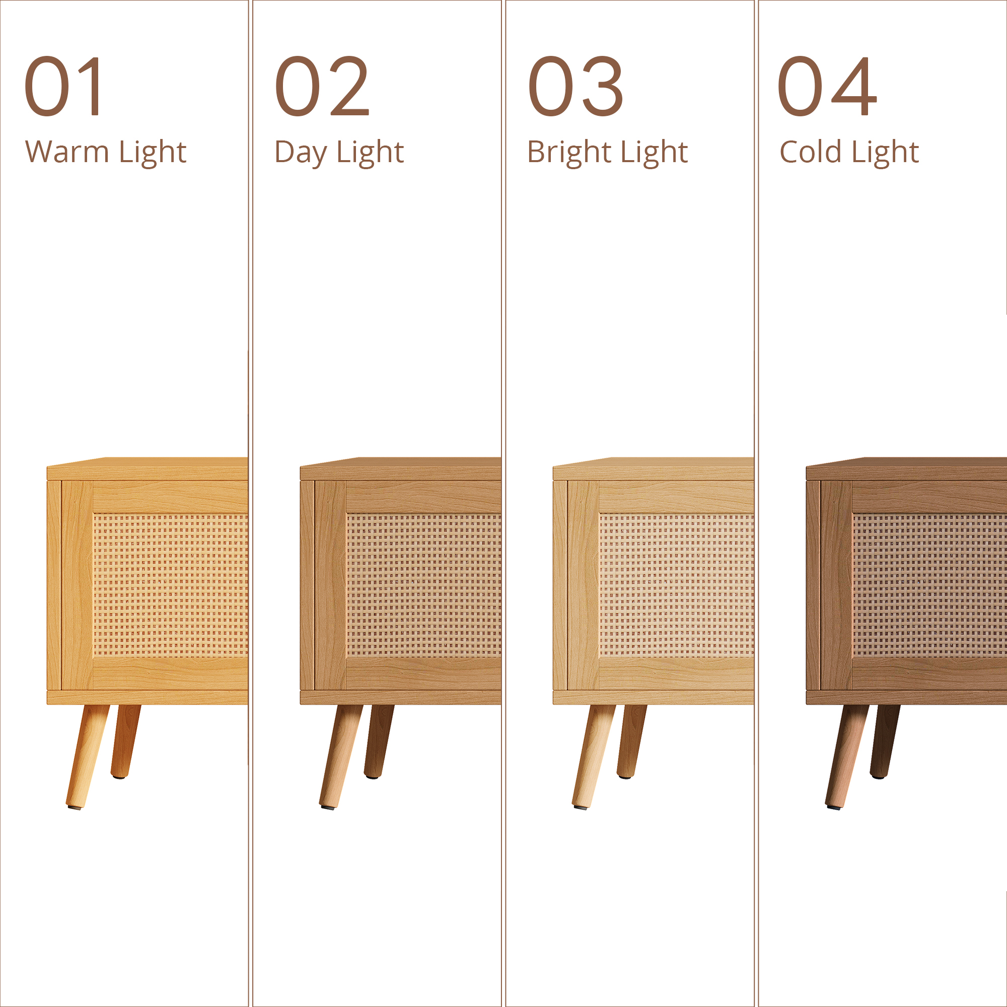 | Material | Cabinet: MDF+ PB / Hardware: Metal/ Feet: Solid Wood(Pine)/ Door: PE Rattan |