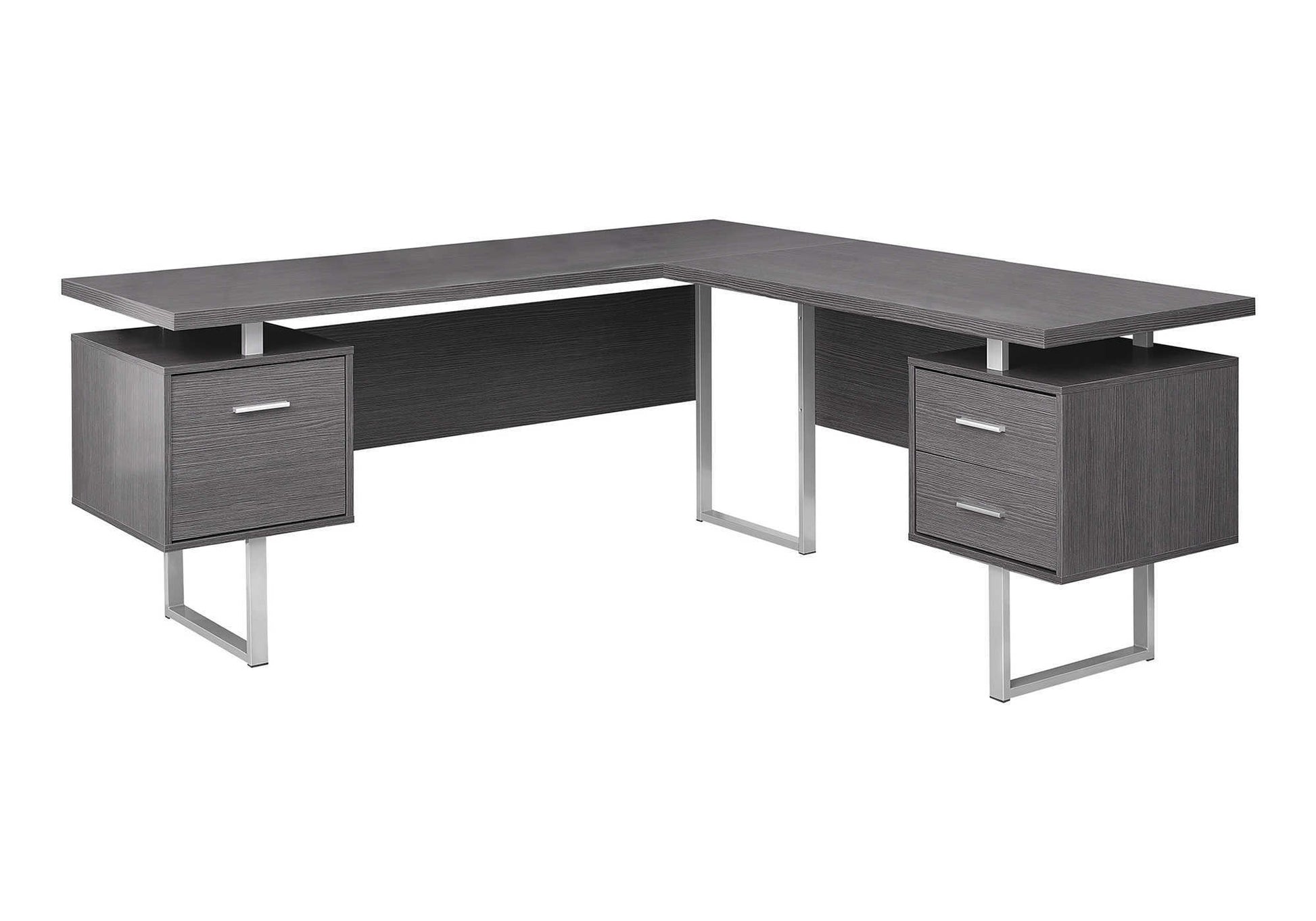 71" Gray and Silver L Shape Computer Desk With Three Drawers