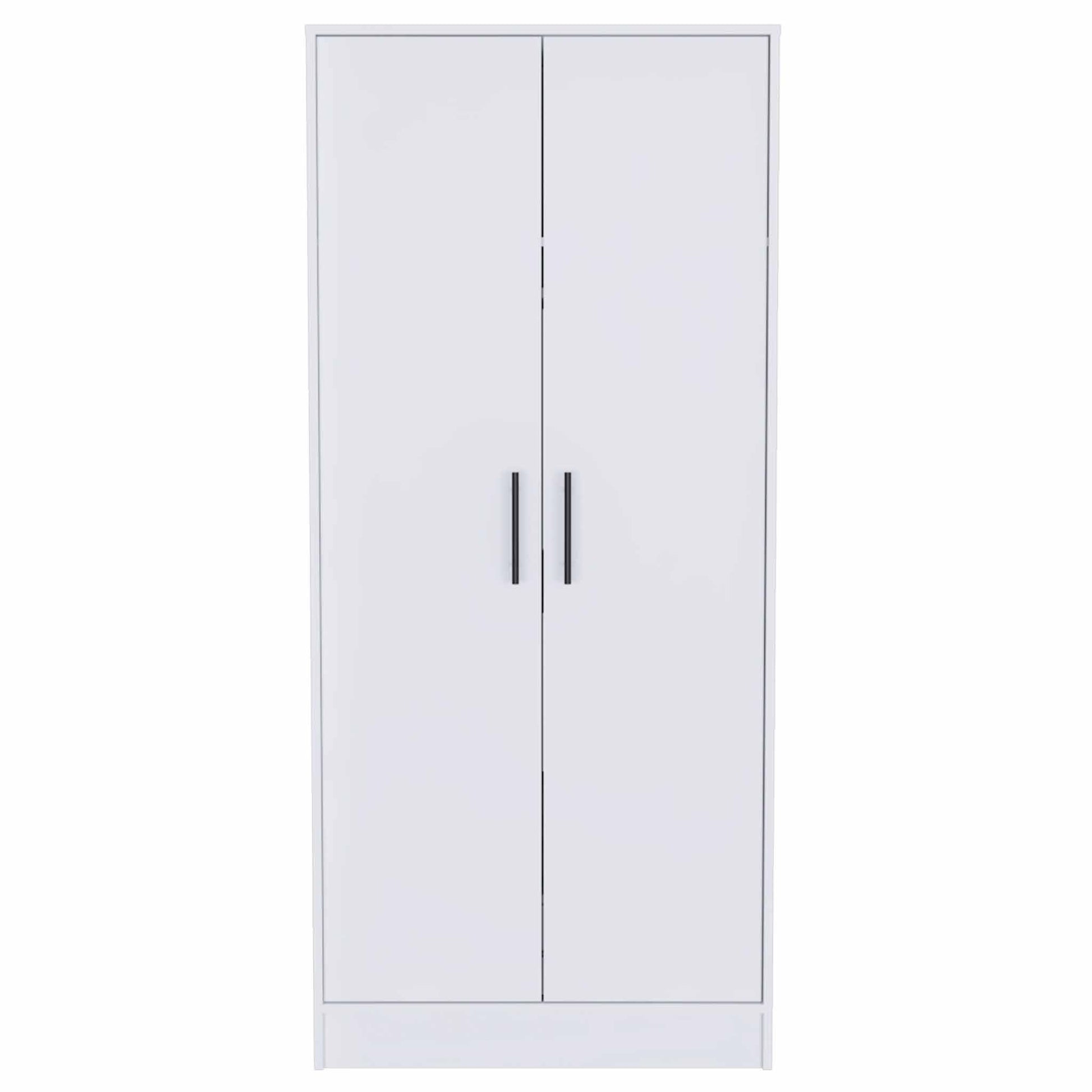 This 71-inch white wood two door single drawer combo dresser is a practical and good looking accent for your bedroom storage and organizational needs. Versatile in use, this combo dresser is equipped with both drawers and doors for all your storage needs. This dresser is made from sturdy manufactured wood that is built to last. The white coloration of this piece is neutral and will blend easily with most any decor. 71.1-inch h x 31.5-inch w x 19.6-inch d.