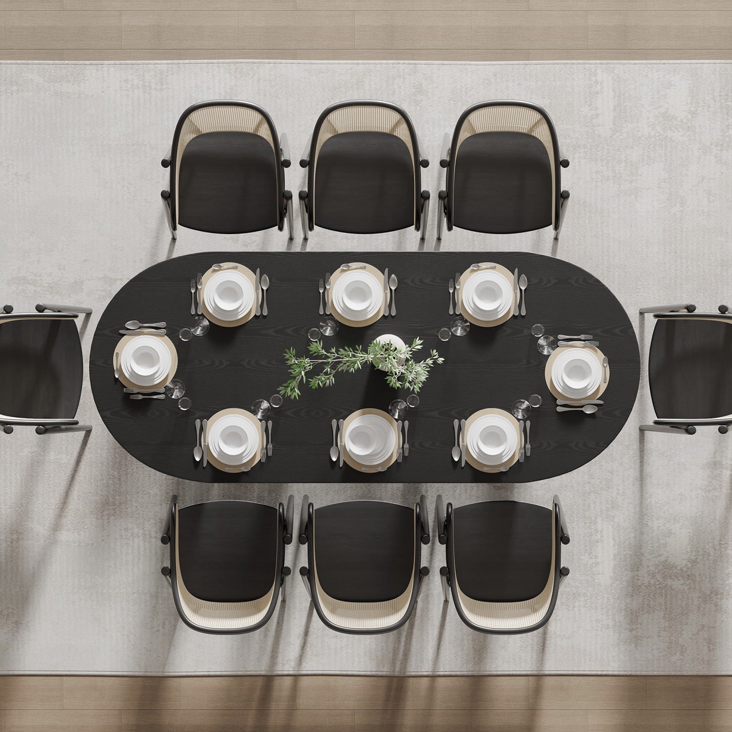 The 79-inch black wood oval bar table is the perfect centerpiece for any modern dining space. Featuring a sleek contemporary design, this table combines elegance with functionality. Crafted from solid and manufactured wood, both the top and base exude durability and style in a sophisticated black finish. The oval shape adds a touch of uniqueness, while the double pedestal base ensures stability and ample legroom. With its fixed table mechanism, this bar table offers a reliable surface for drinks and dining experiences. Ideal for restaurants or home bars, its machine-made construction guarantees quality that will withstand the test of time and enhance your entertaining atmosphere. 30.00-inch h x 79.00-inch w x 33.50-inch d.