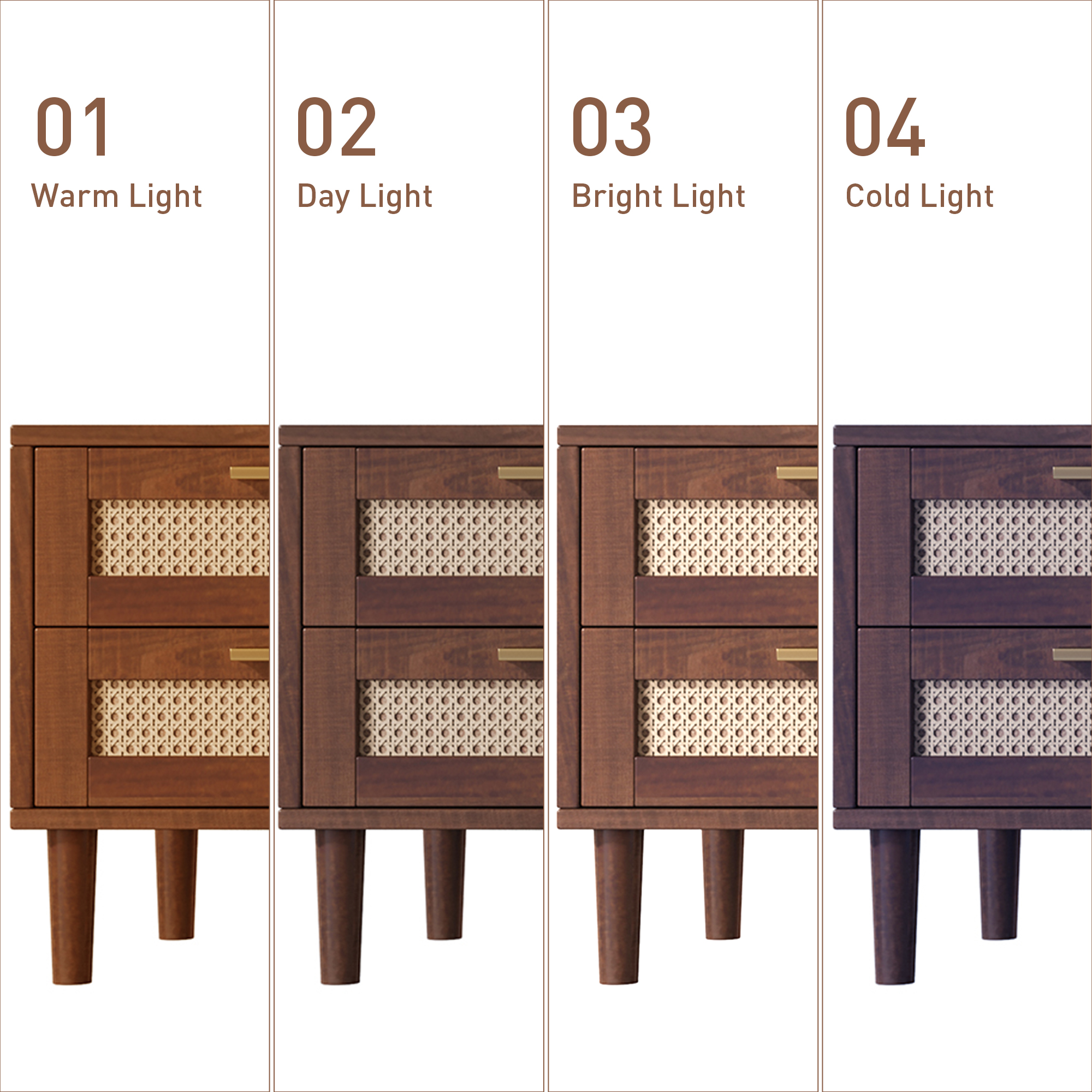 | Material | Cabinet: MDF / Hardware: Metal/ Feet: Solid Wood(Pine)/ Door: PE Rattan |