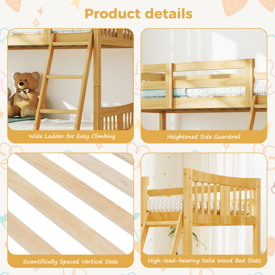 - Easy & Safe Climbing: Featuring an external ladder frame design with an ergonomically inclined ladder surface, it ensures effortless ascending and descending. Each step incorporates sturdy solid wood crossbars for comfortable grip, effectively preventing scrapes or injuries to little hands and feet, making every climb safe and worry-free.
