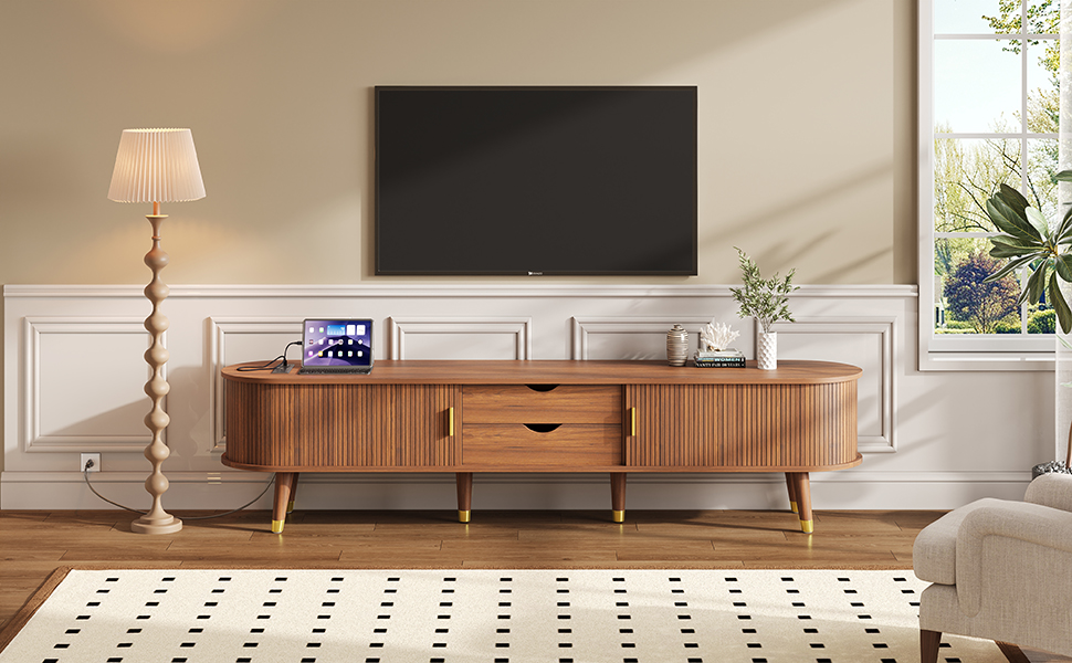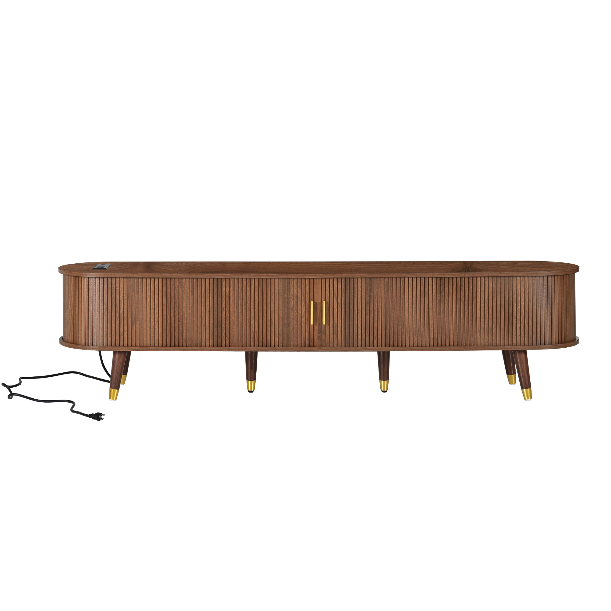 Product Name:[Assembly Video]Wooden Oval Fluted TV Stand with Charging Station for TV up to 80", Mid-Century Media Console with Sliding Tambour Door, Farmhouse TV Cabinet with Golden Handle for Living Room, Walnut