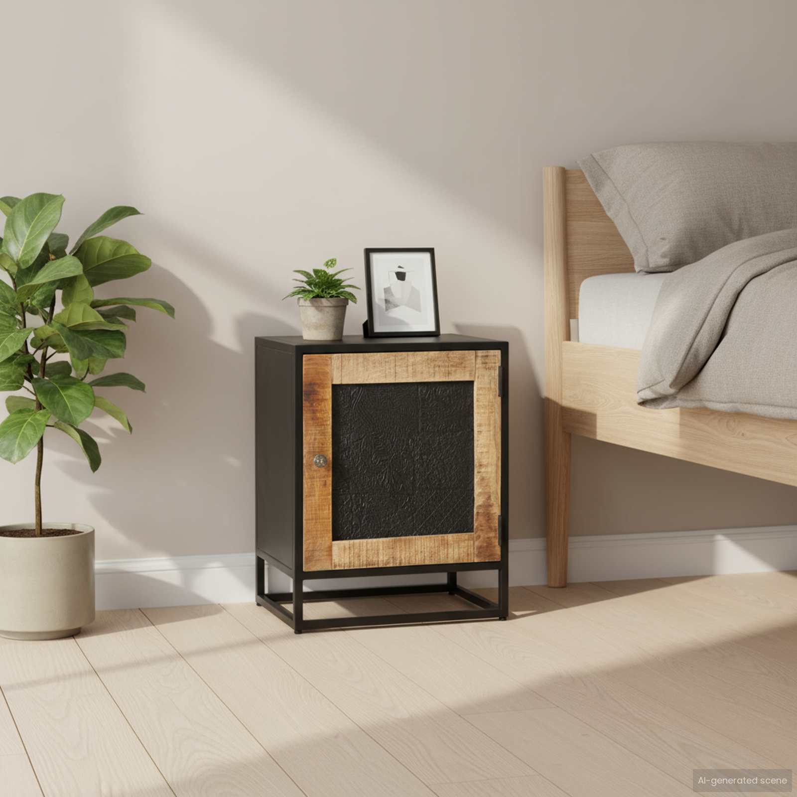 This bedside cabinet blends style and practicality, making it a must-have in any modern home. With solid mango wood, it brings rustic charm and the hand-carved bits add a unique touch, making it stand out in both bedrooms and living rooms.