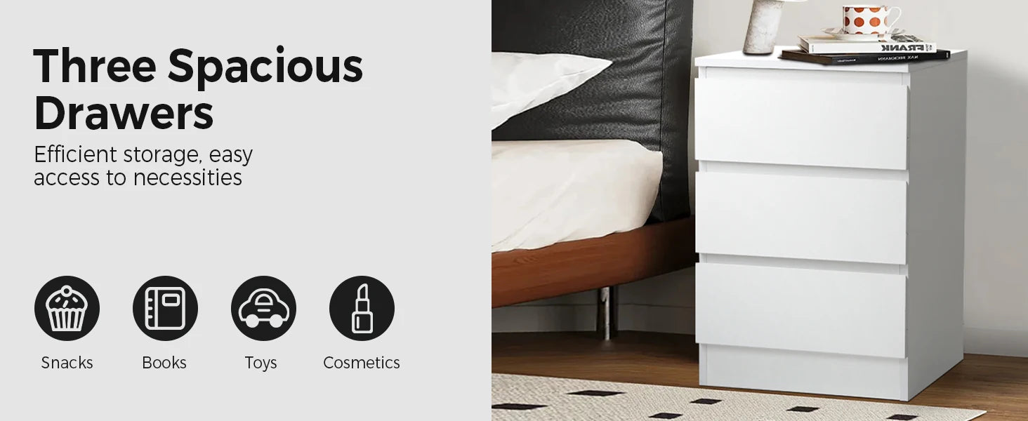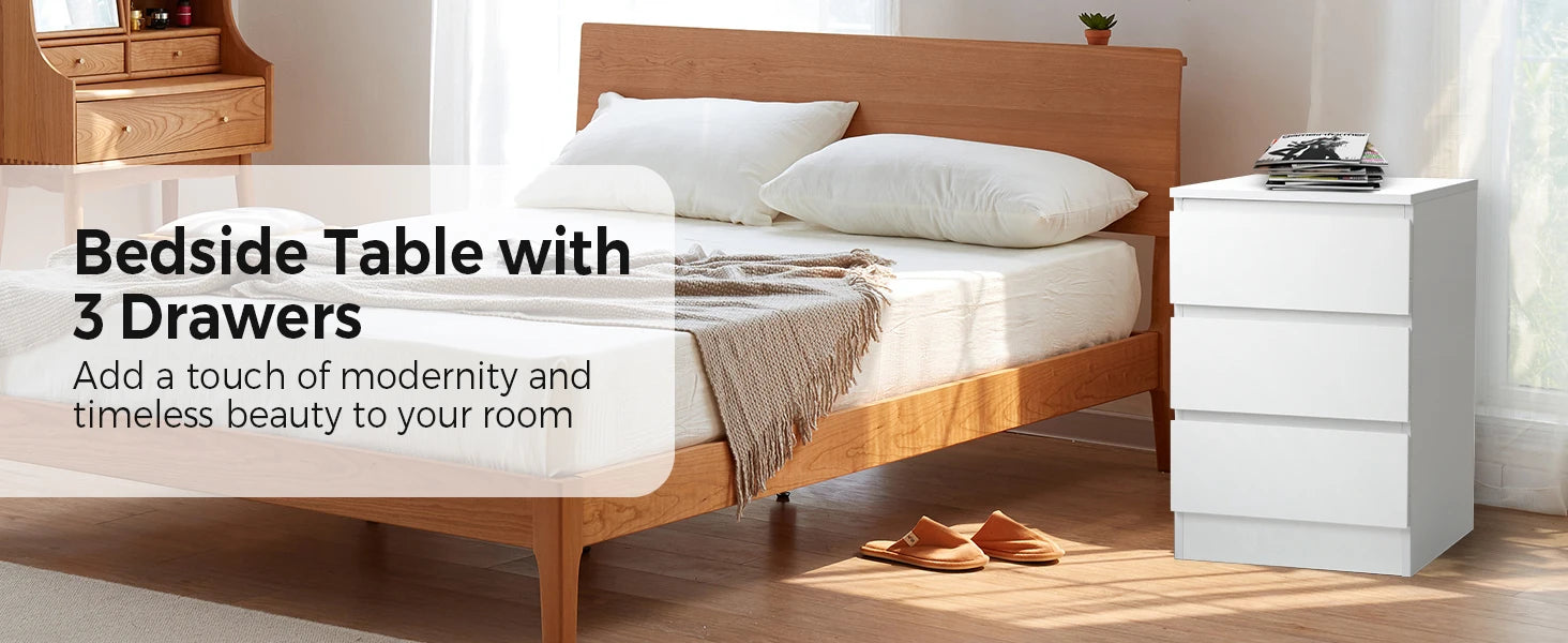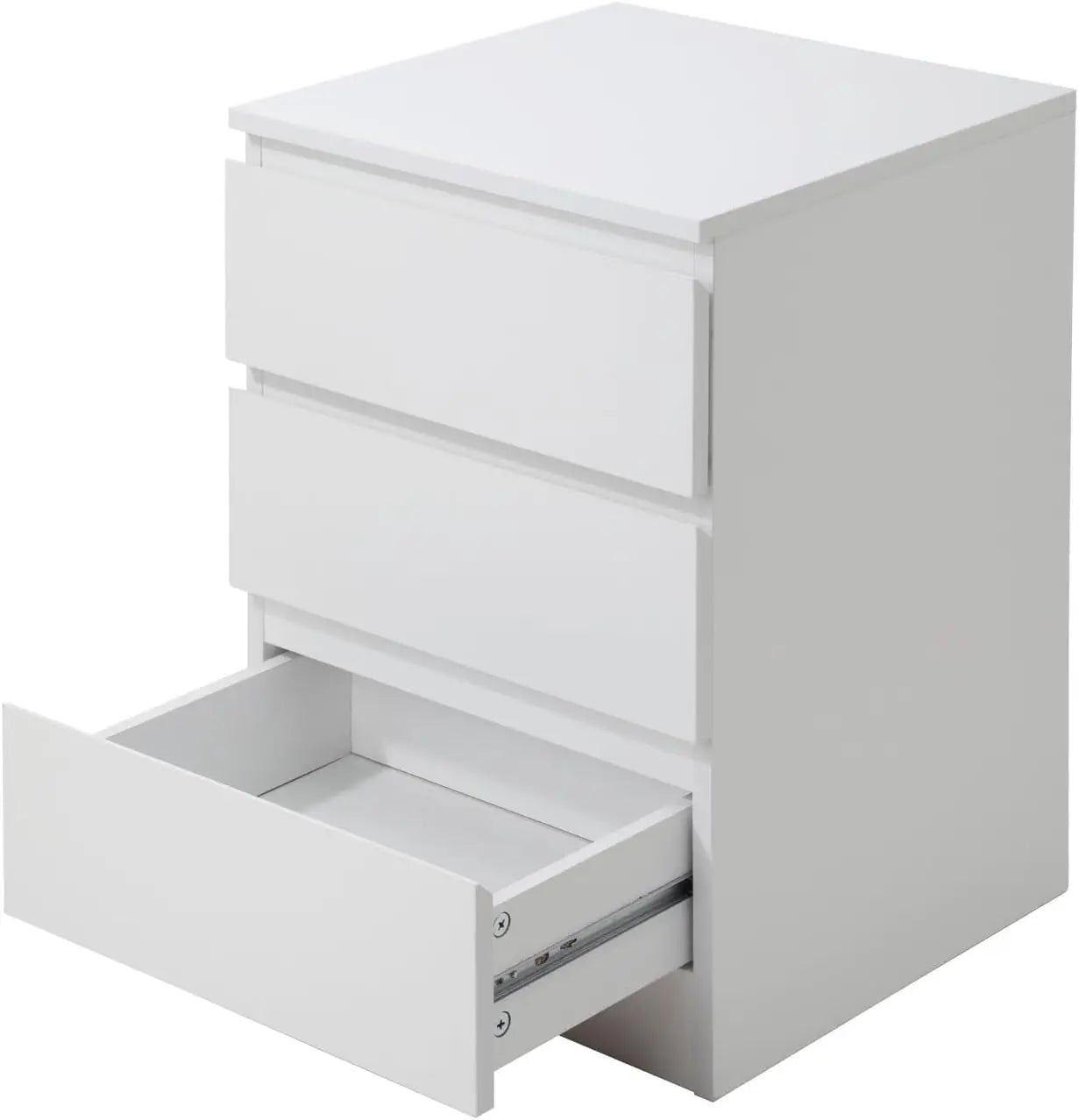 Bedside Table 3-Drawers with Thick Board, Nightstand Storage Cabinet with Coated Runners, Side Table Modern for Hallway, Bedroom