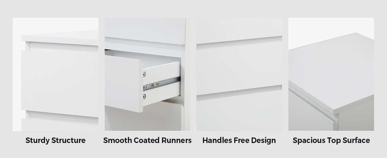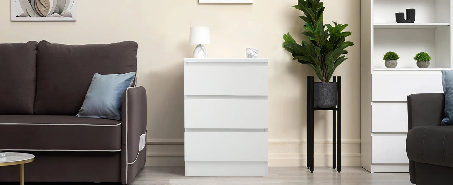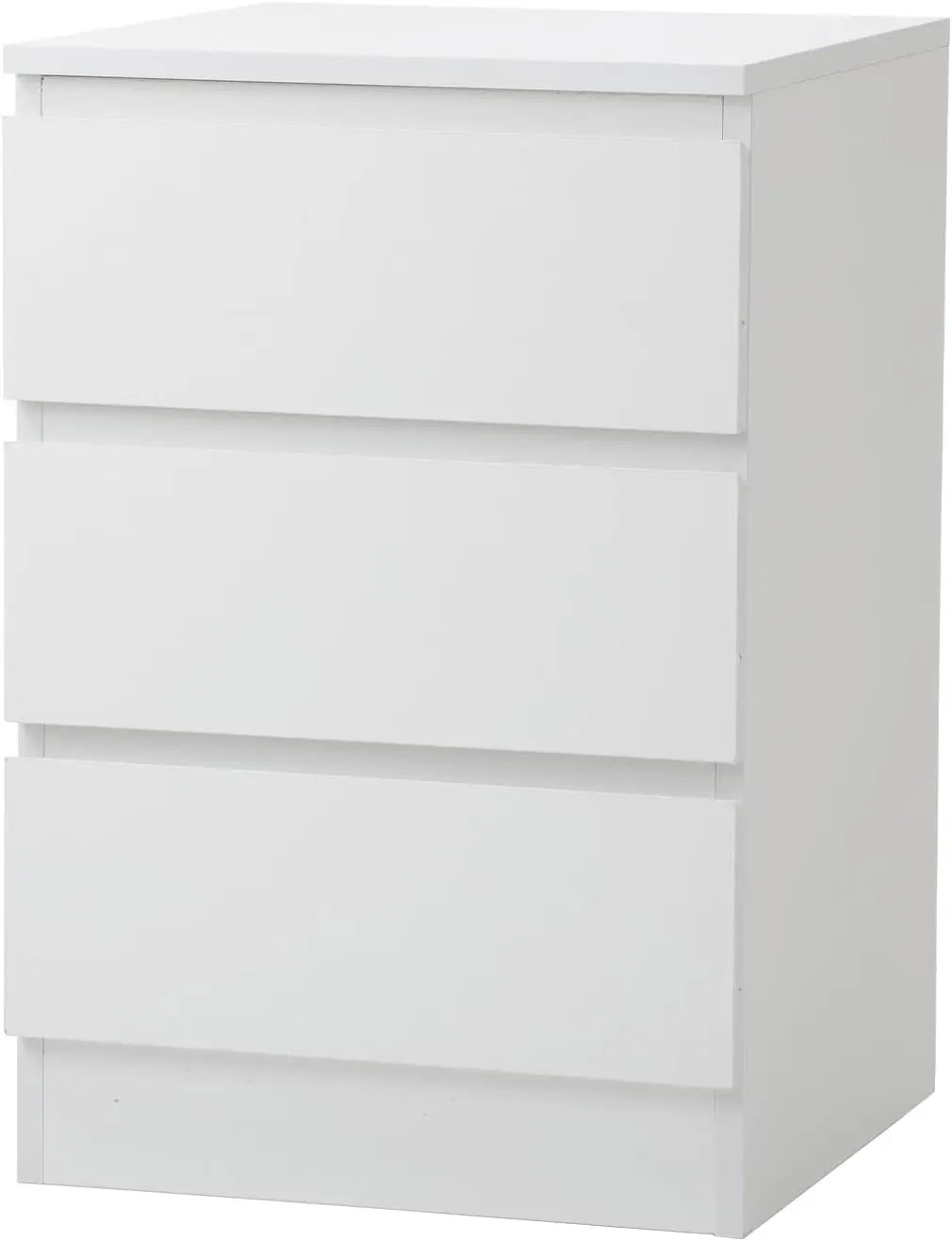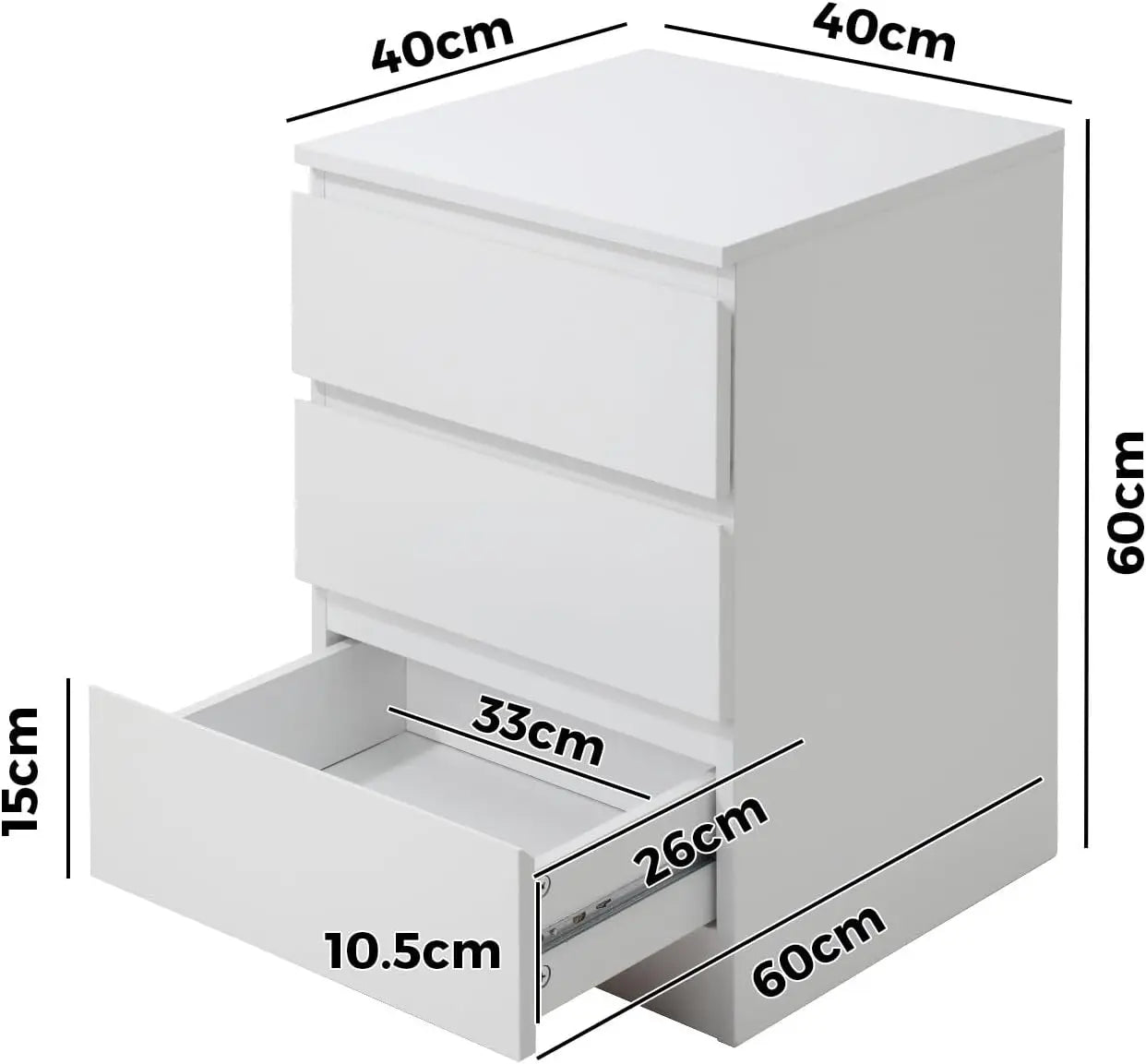 Bedside Table 3-Drawers with Thick Board, Nightstand Storage Cabinet with Coated Runners, Side Table Modern for Hallway, Bedroom