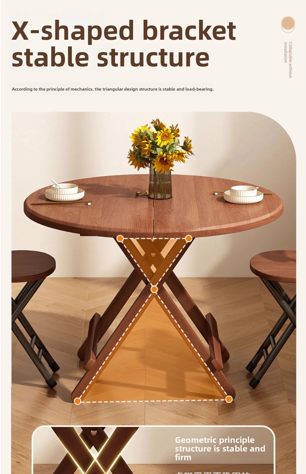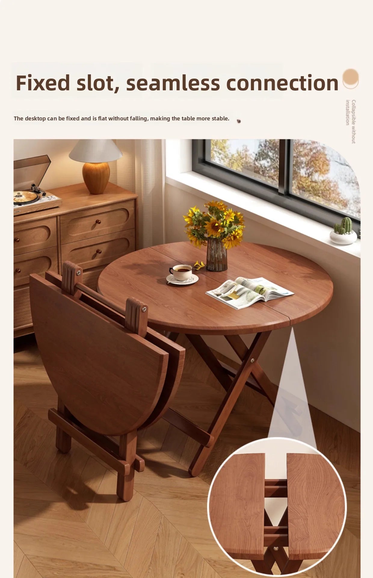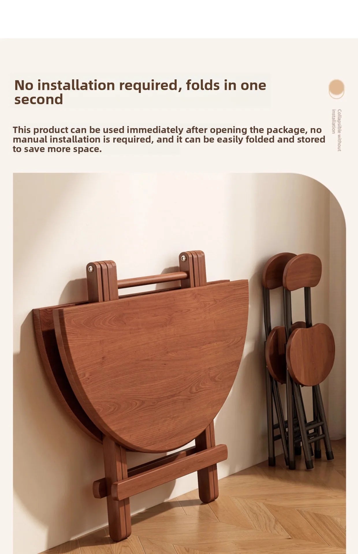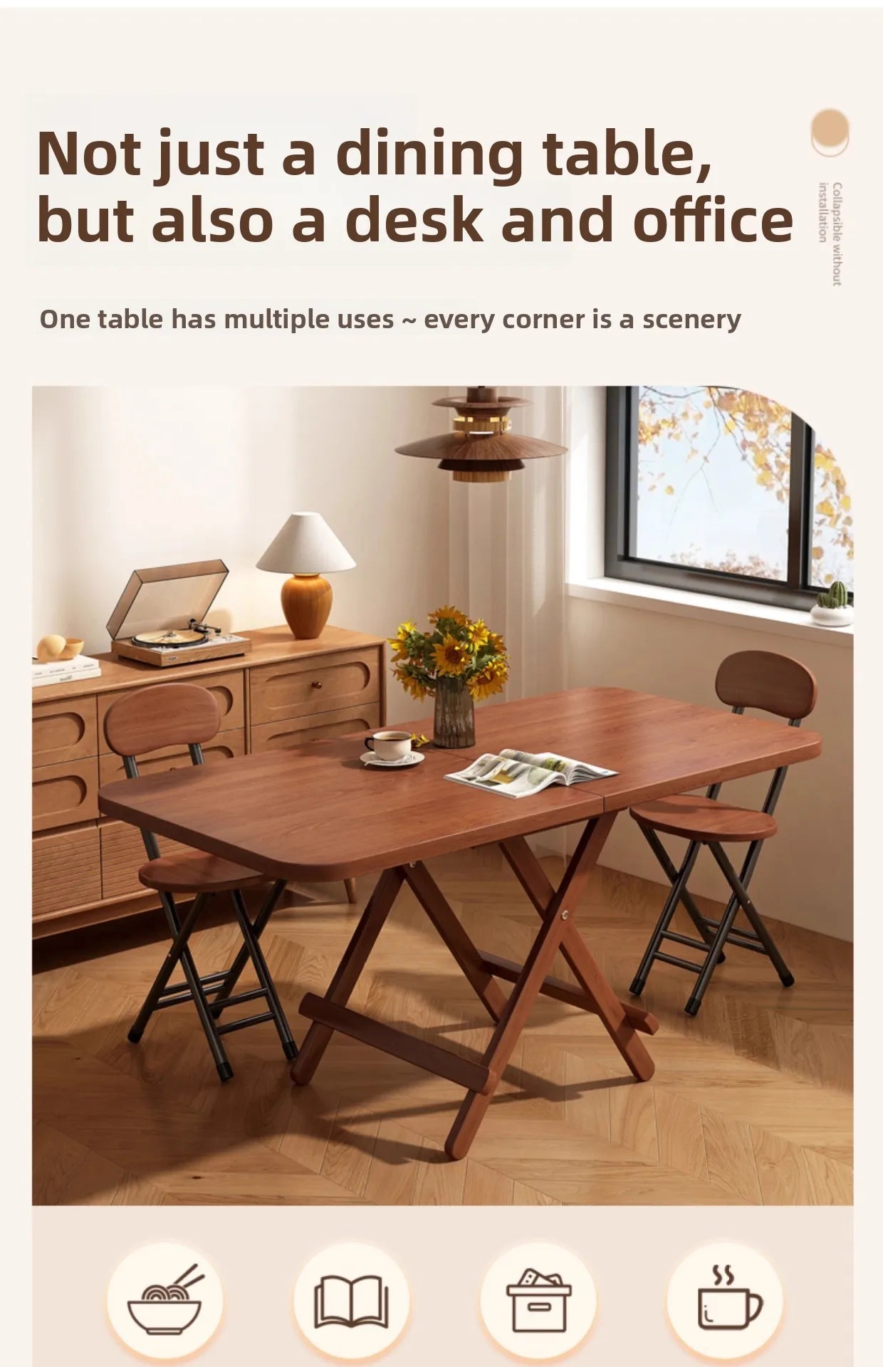 Ideal for small apartments, cozy corners, offices, or temporary setups – this foldable table combines smart design with everyday functionality.