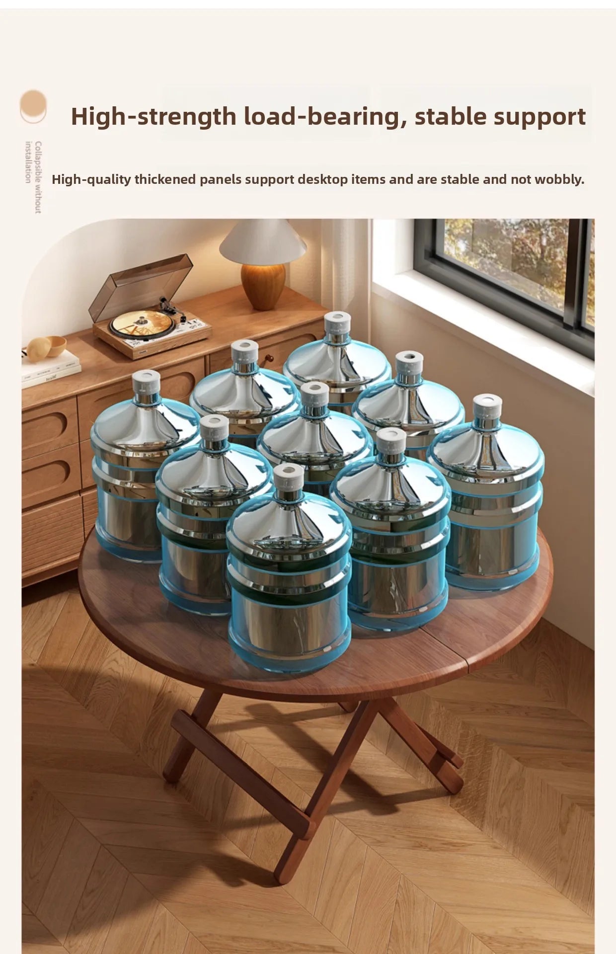 Featuring reinforced, thickened legs and a durable desktop with wrapped edges for extra stability. Holds your items firmly without wobbling – a clear upgrade over ordinary thin-legged tables.