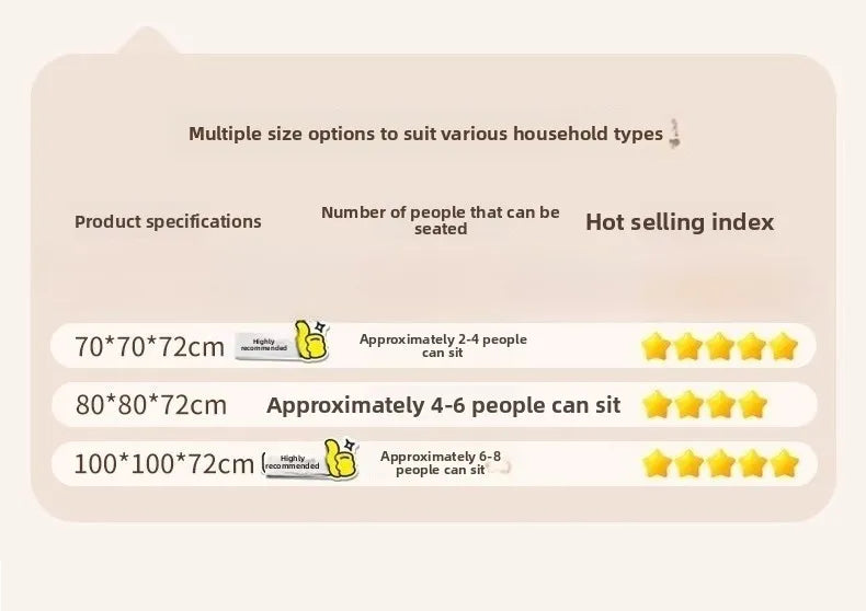 100×100×72 cm | Seats 6–8 | ⭐⭐⭐⭐☆