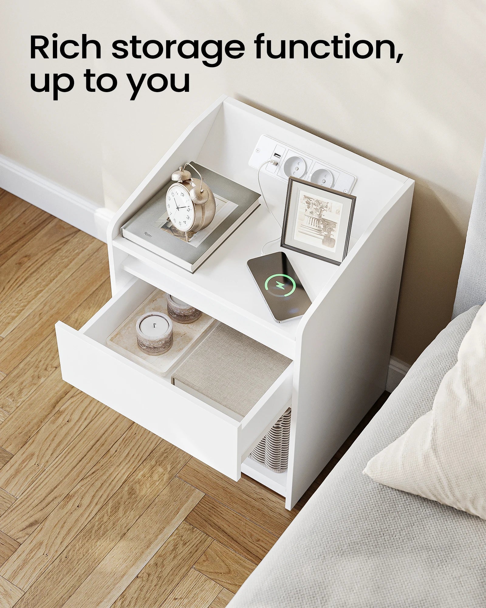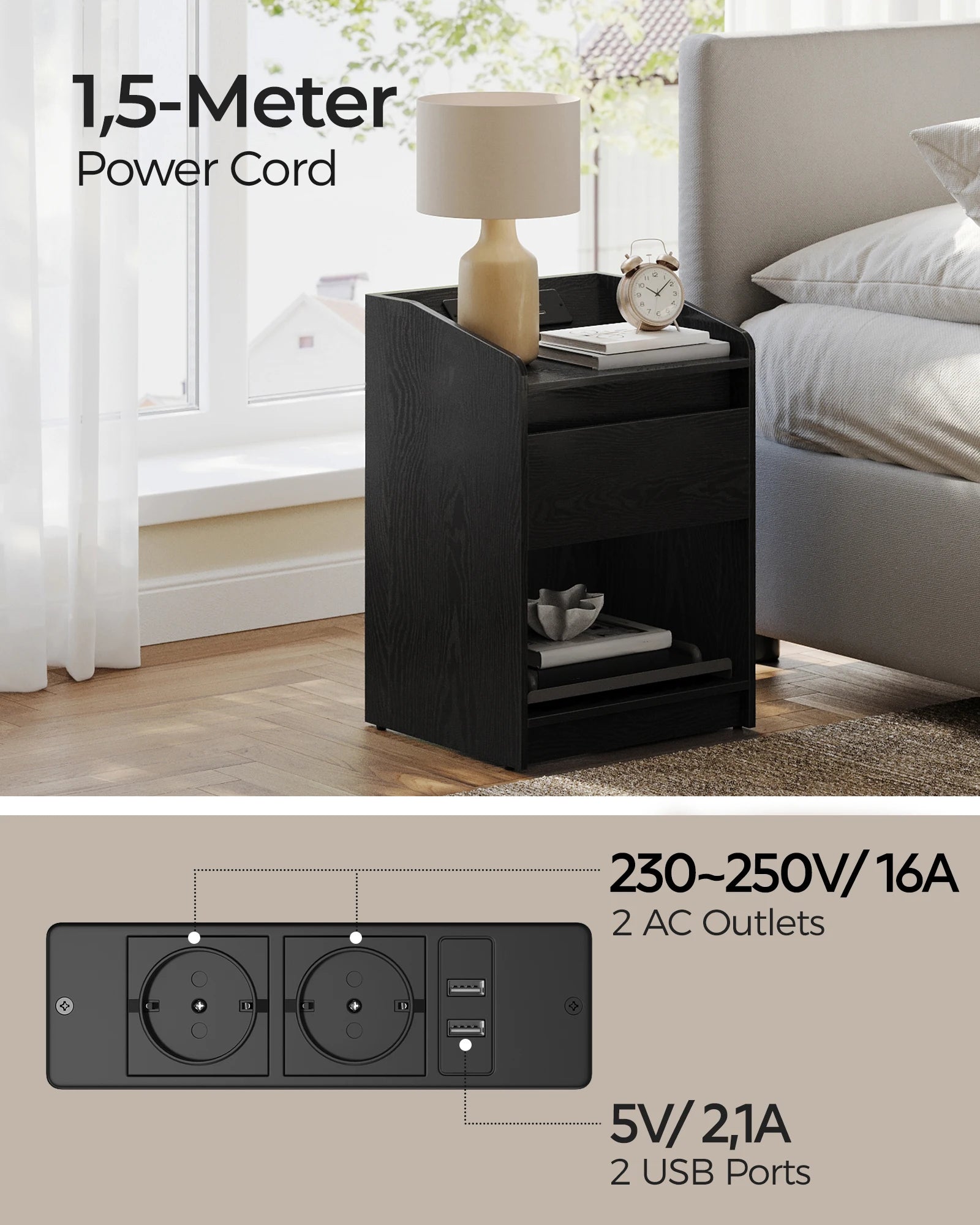 [Plug Your Device with Ease]: The angled charging panel is the standout feature of this nightstand, allowing for easy access to plug and unplug your devices. With a 1,5-meter cable included, you can place this bedside cabinet further away from the power outlet and still enjoy its charging benefits.