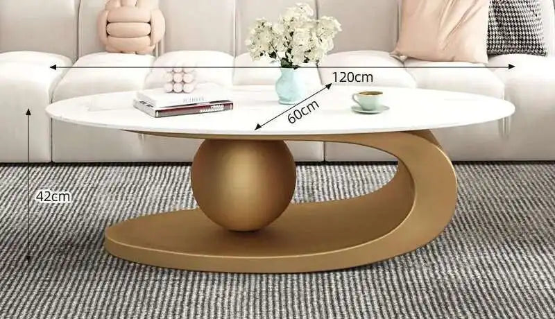 Italian Light Luxury Coffee Table for Office High-end Rock Board Smooth Tables Cream Style Unique Oval Side Table for Apartment