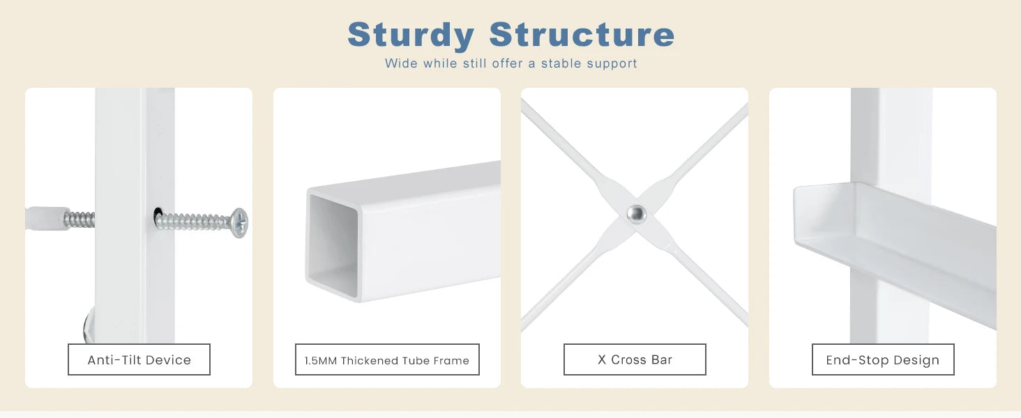 Sturdy Frame: The high-quality metal frame extends the lifespan of the chest of drawers while keeping the chest of drawers stable and sturdy at any time. With 4 height-adjustable feet to protect your floor from scratches, you can also adjust the balance of the chest of drawers in small areas. An auxiliary function will be added if you fix the drawers dresser to the wall, as it can prevent possible tilt caused by uneven floor or children climbing.