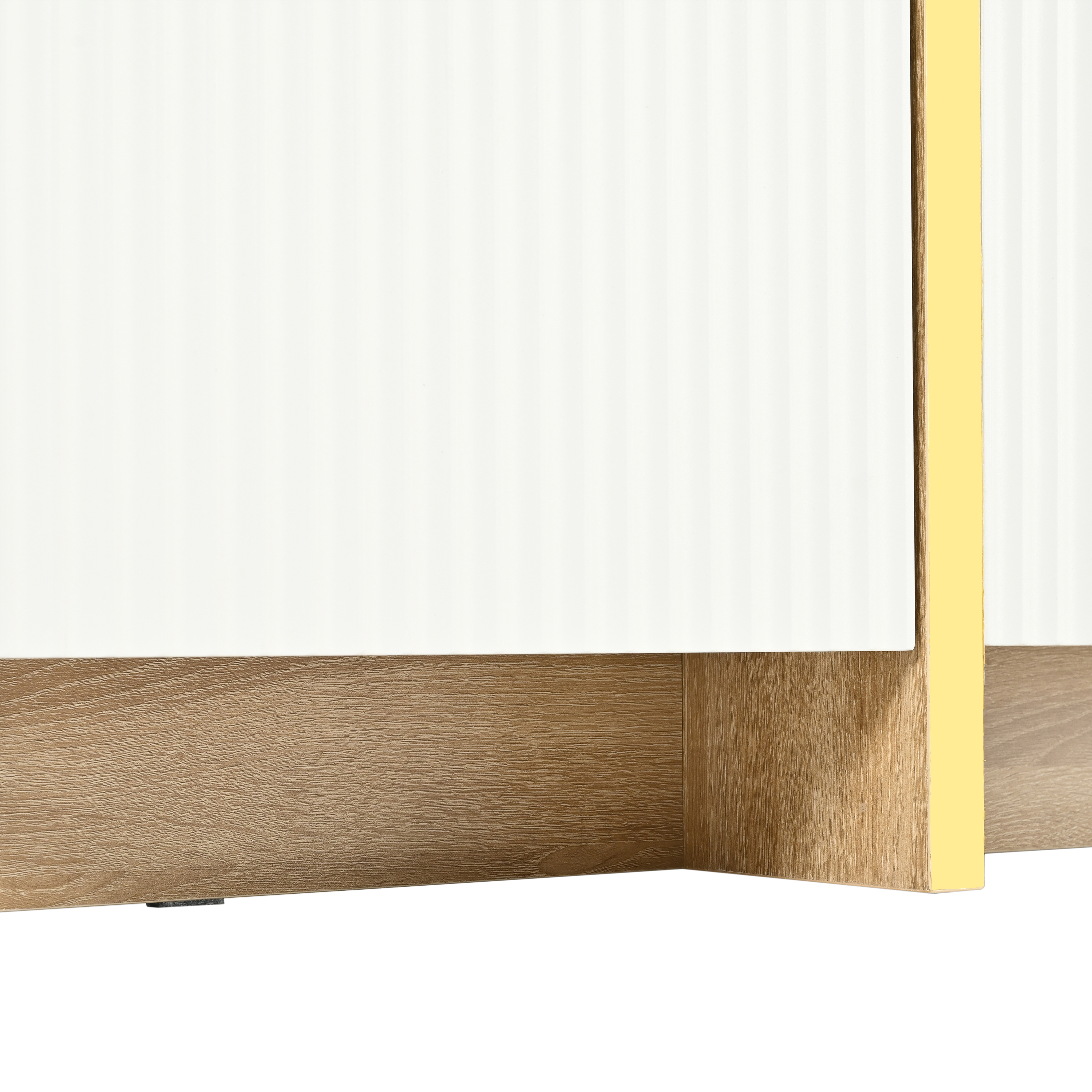 • Featuring smooth fluted panels and golden wood grain legs, this TV stand emanates a luxurious elegance that harmoniously complements a wide range of modern furniture styles.