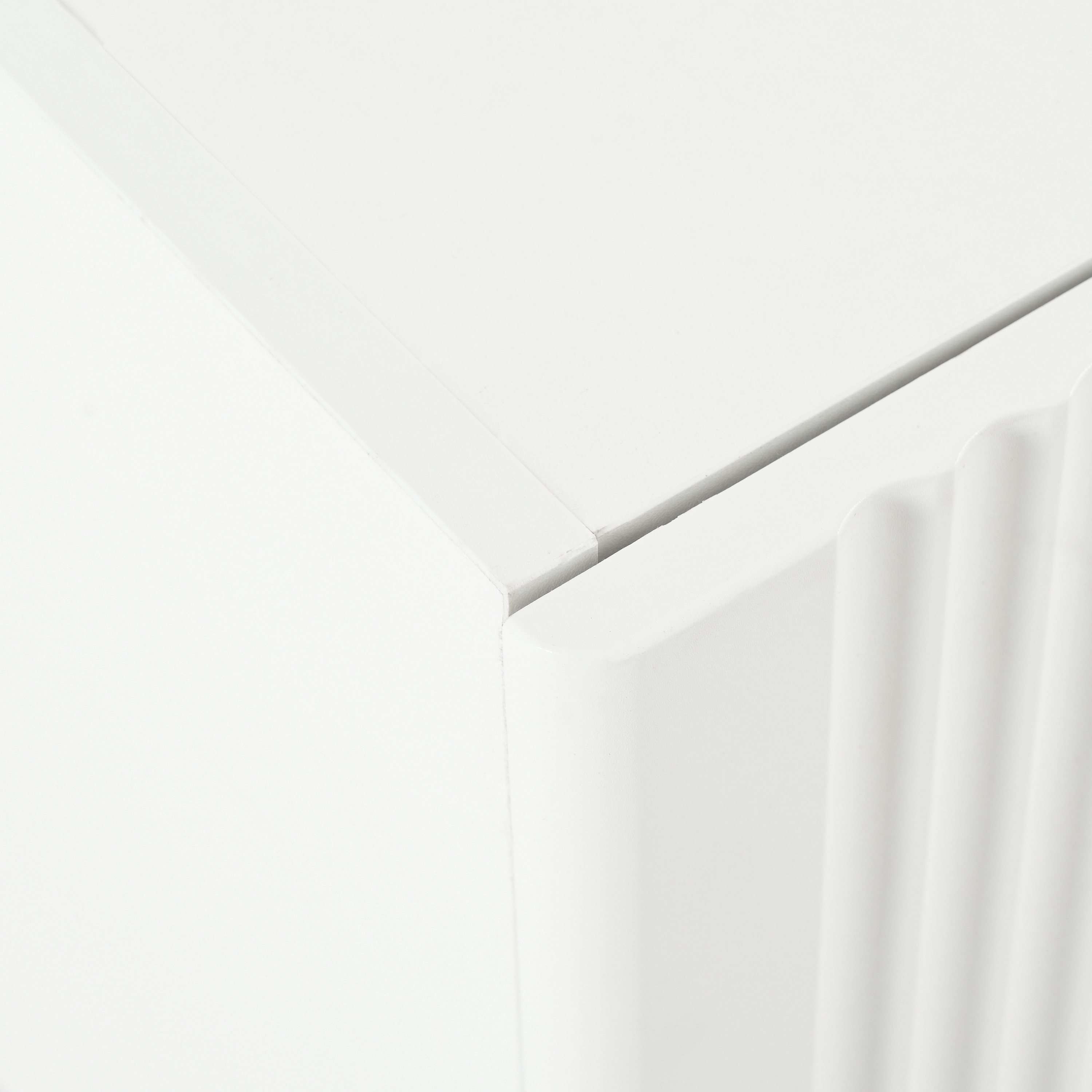 The fluted panels are meticulously crafted with blister molding techniques, which is renowned for its exceptional quality. The cabinet is skillfully constructed from MDF (Medium Density Fiberboard) and particleboard, showing a refined texture while ensuring superior durability and water resistance.