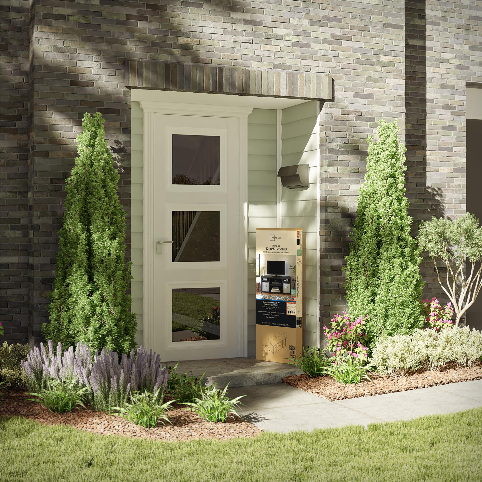- The TV Stand ships flat to your door and 2 adults are recommended to assemble. The TV Stand can accommodate up to 55 lbs. Each shelf will hold up to 20 lbs. Assembled dimensions: 20.875"H x 45.375"W x 15.75"D.