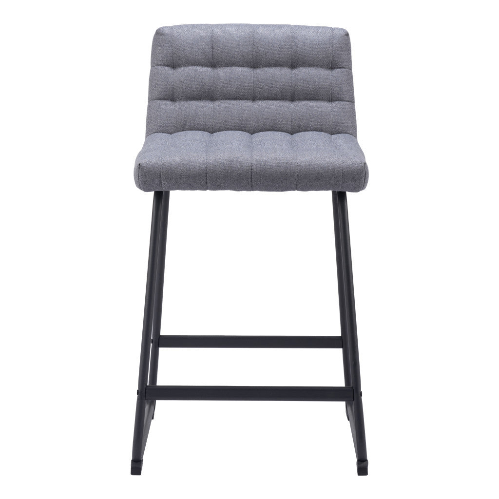 Set of Two 26" Gray And Black Fabric And Steel Counter Height Bar Chairs