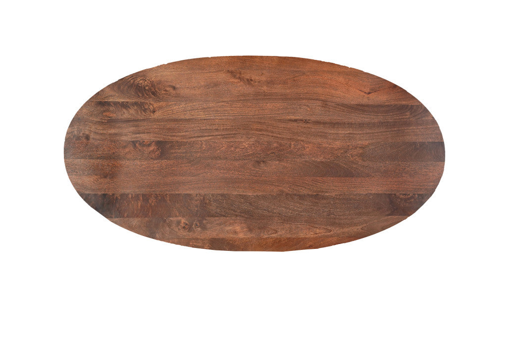 This seven piece brown solid wood dining set with six chairs will elevate the decor of your room, inspiring compliments from any guest. This oval table is made with a solid wood base and top surface giving it a unified and fashionable look. The table not only looks great, but it also comes with a set of 6 solid back chairs. You will love the chairs' design and coloration that complement most any home decor. This dining set is a dream come true. Fashionable design and a comfortable build are sure to make dining more enjoyable with friends and family. 30-inch h x 92-inch w x 42-inch d.
