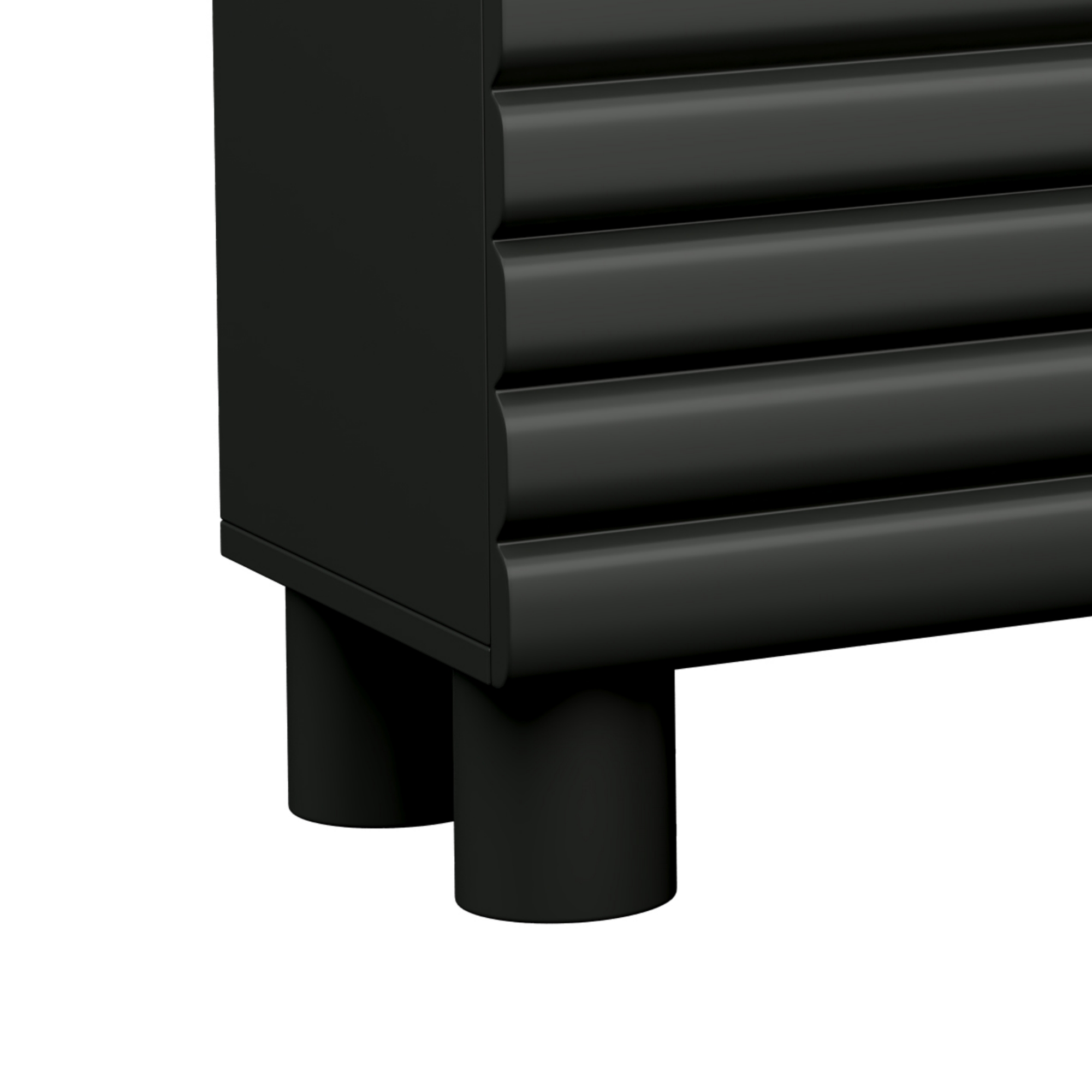 Transform your living room with this stunning TV stand, featuring an elegant wavy door panel design that adds a touch of modern flair to any space. The sleek, solid color finish adds a touch of sophistication, while the round cylindrical legs giving a soft, minimalist look to the overall aesthetic.
