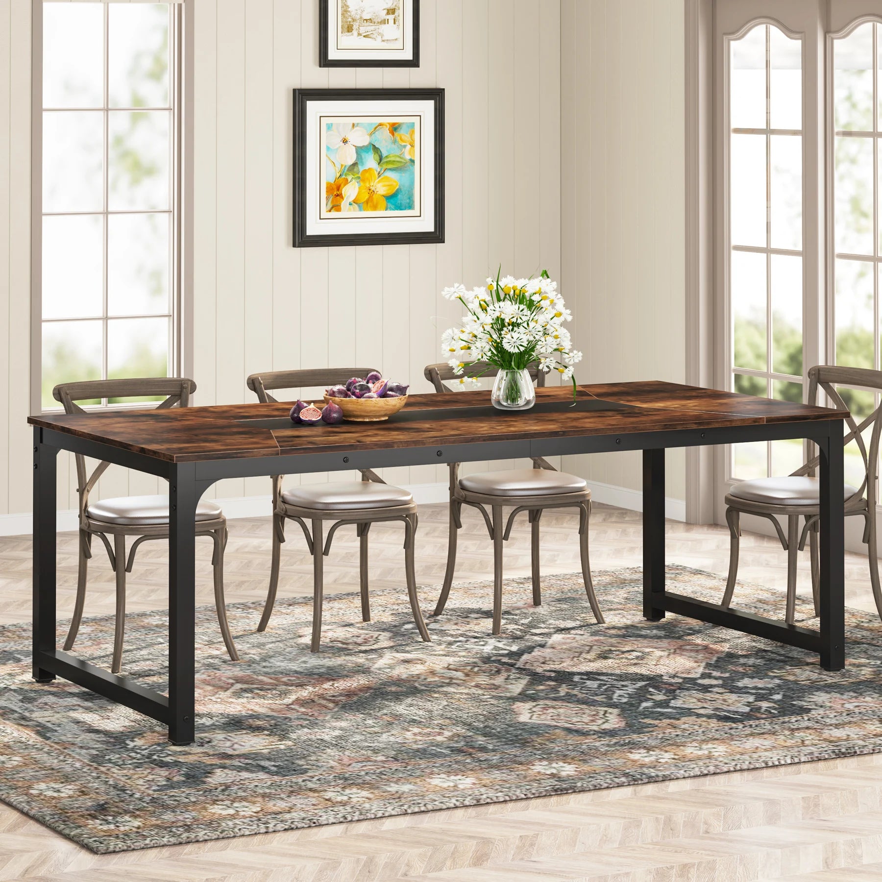 Tribesigns Dining Table, Industrial Kitchen Table for 6-8 Person, Rectangular Dinner Table for Dining Room
