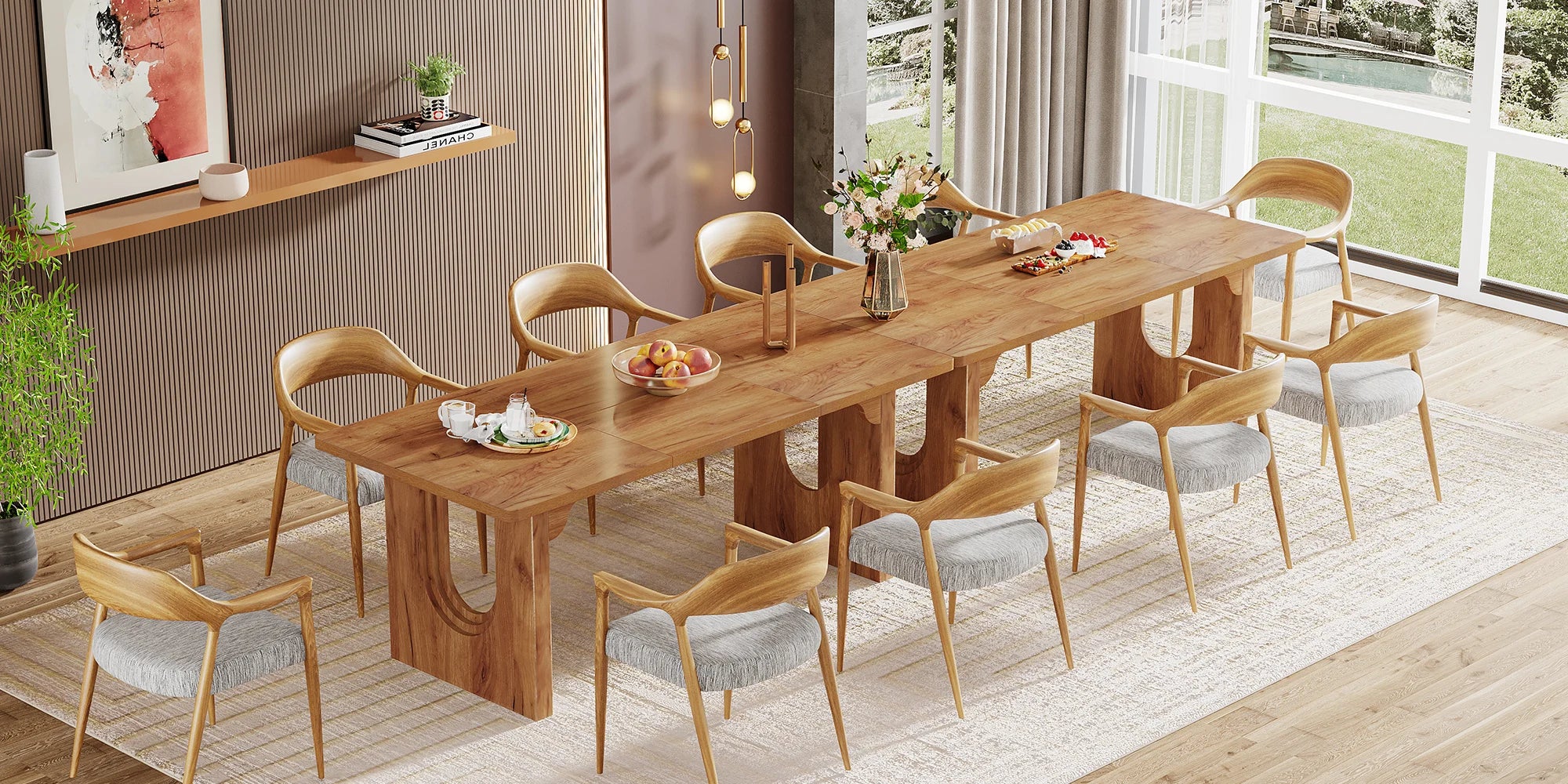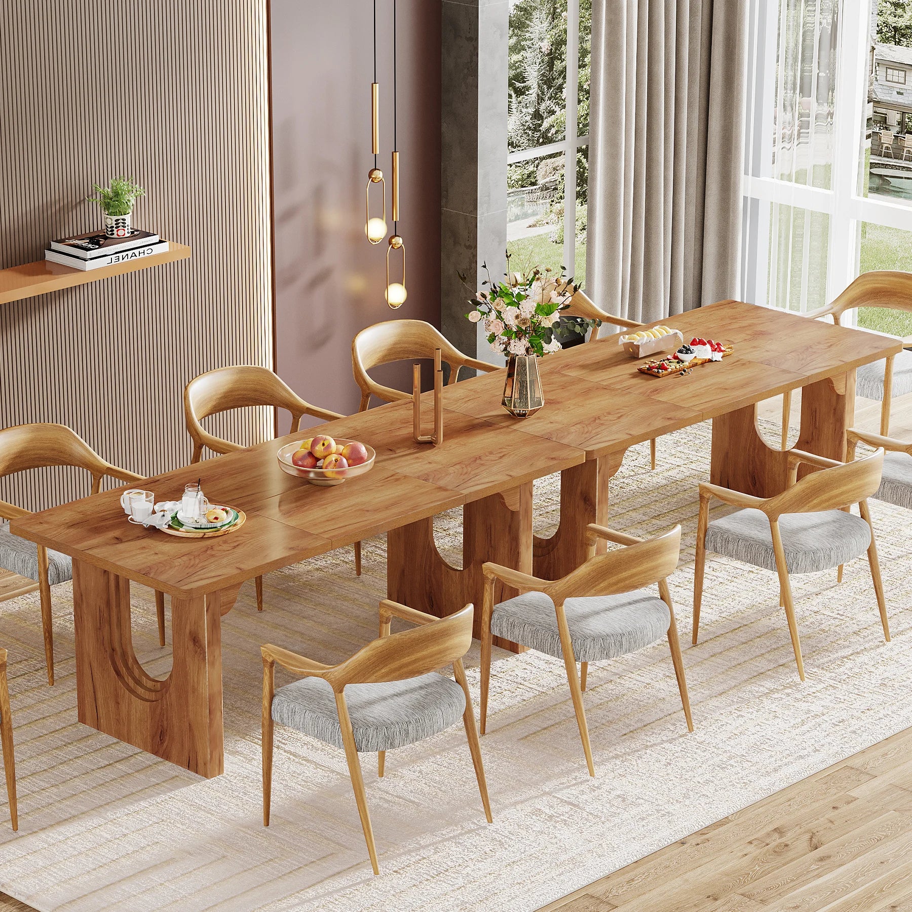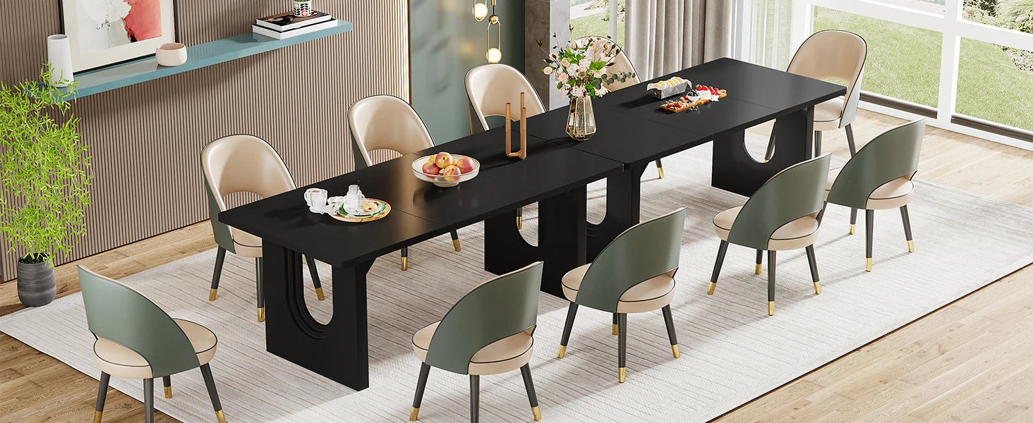 【Versatile Dining Table】 Start your brainstorming, you will find this rectangle desk can switch between a dining table for 8, a makeshift workbench, an office executive desk, a large computer desk, or even a small conference table at will. Whether you need a space to enjoy meals with loved ones, tackle creative projects, or conduct business meetings, this long table will be a perfect addition to any occasion.