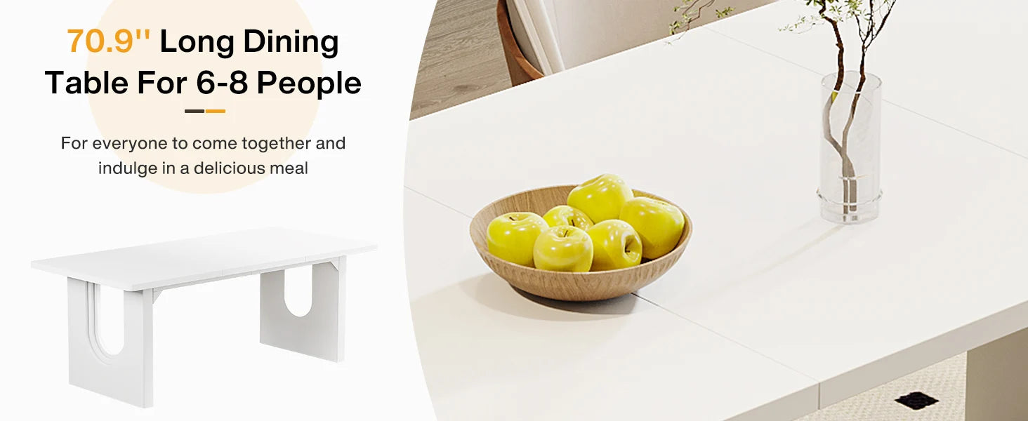 【Ample Space for Enjoyment】 Measuring 70.8 " L x 31.5" W x 29.5" H, the kitchen table comfortably accommodates 6-8 person. The generous top provides ample space for all your delectable persondishes, from mouthwatering roast chicken and refreshing salads to delightful desserts. To celebrate happy hours with your family or to accommodate all your guests at gatherings, this wood dining table is an ideal choice!