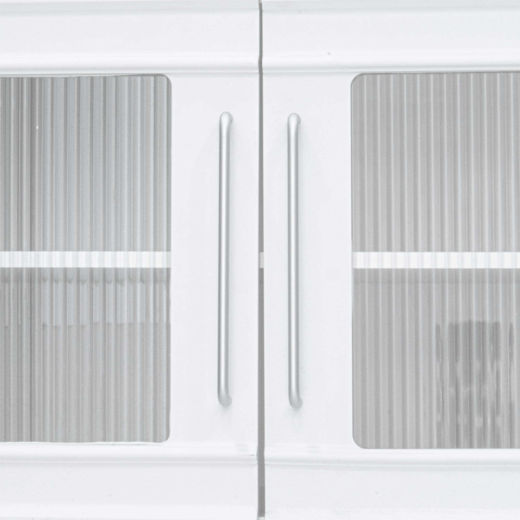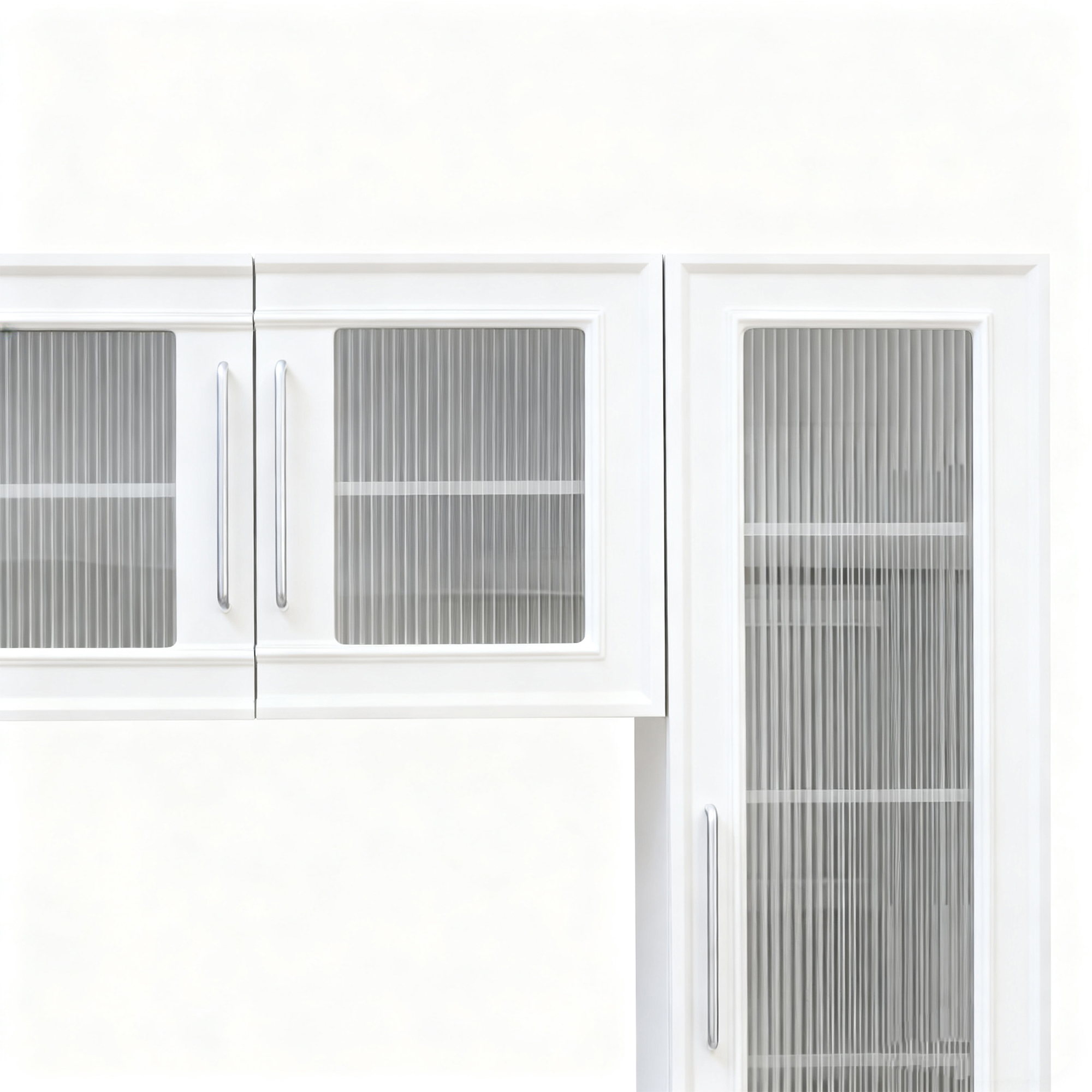 - ăElegant Striped Glass CabinetsăTop and side cabinets showcase fluted glass doors, creating a semi-transparent effect thatâs perfect for displaying decorative pieces or treasured collectibles while maintaining a sense of privacy.